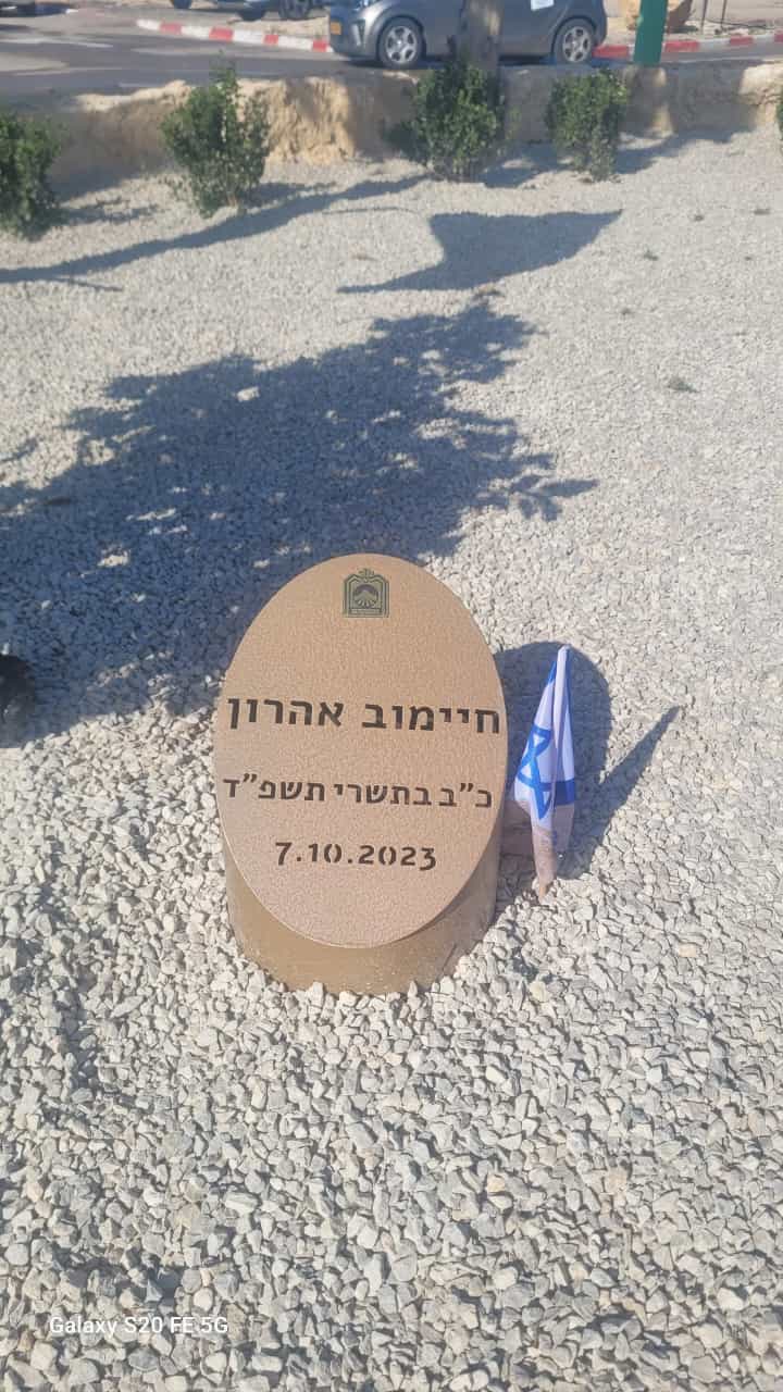 אהרון, תושב אופקים, נפגע מירי מחבלים בעת שיצא לטפל בנפגעים, ונהרג. אהרון הותיר אחריו 2 ילדים ואשה, הורים אחים ובני משפחה.