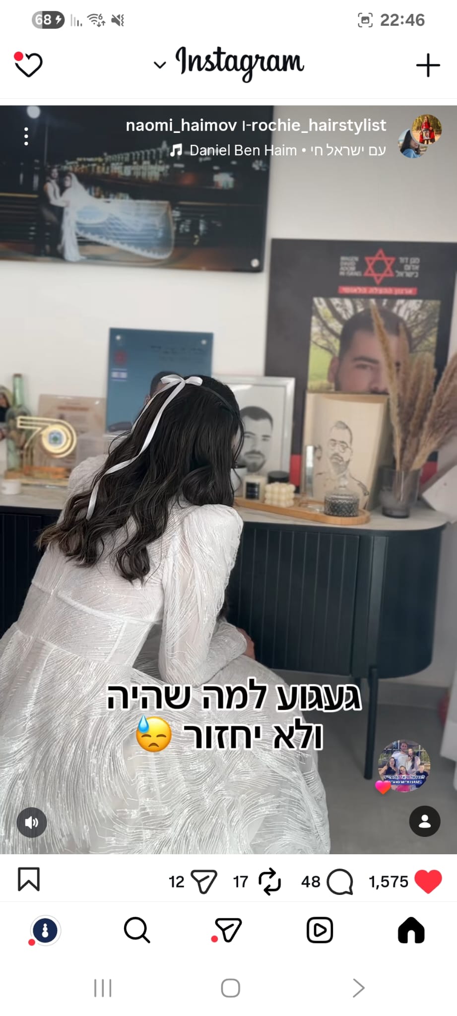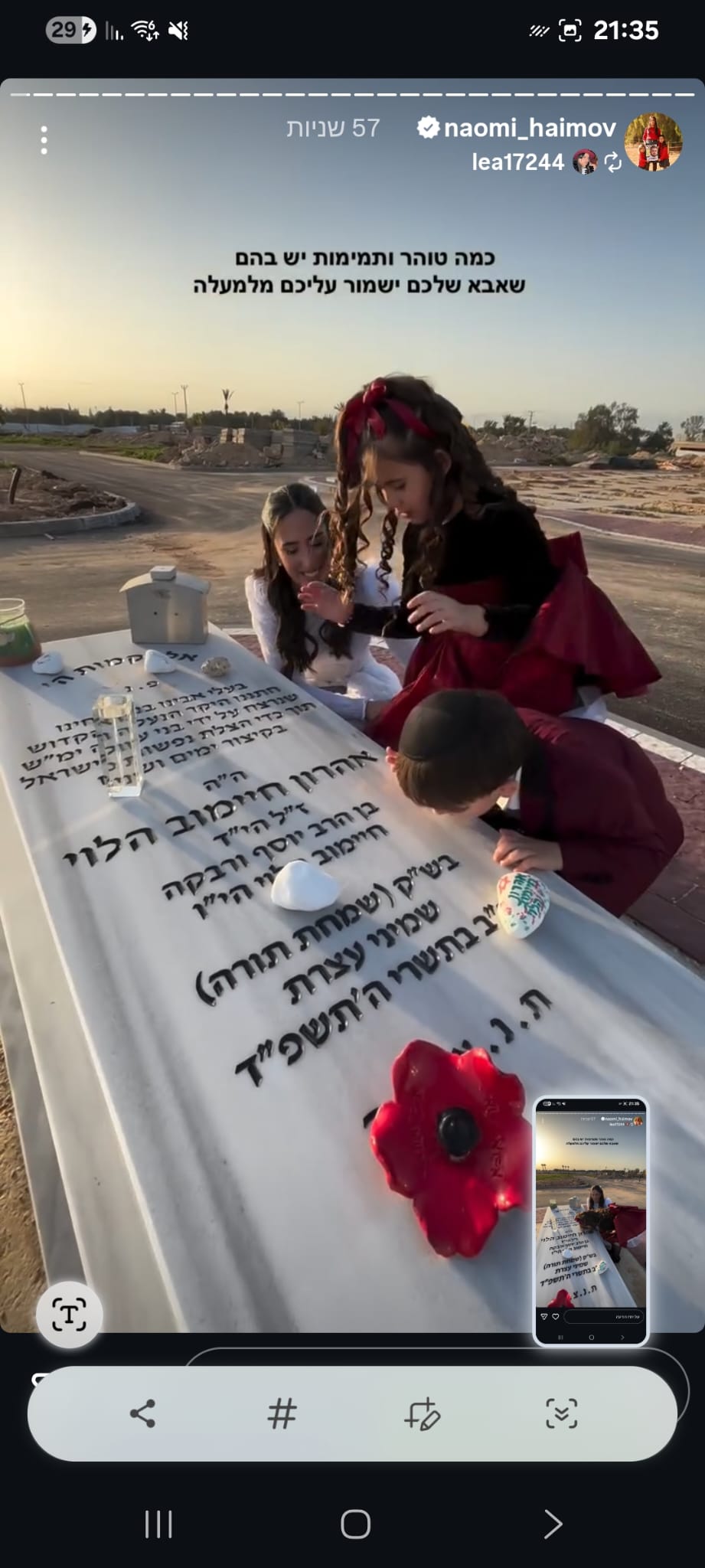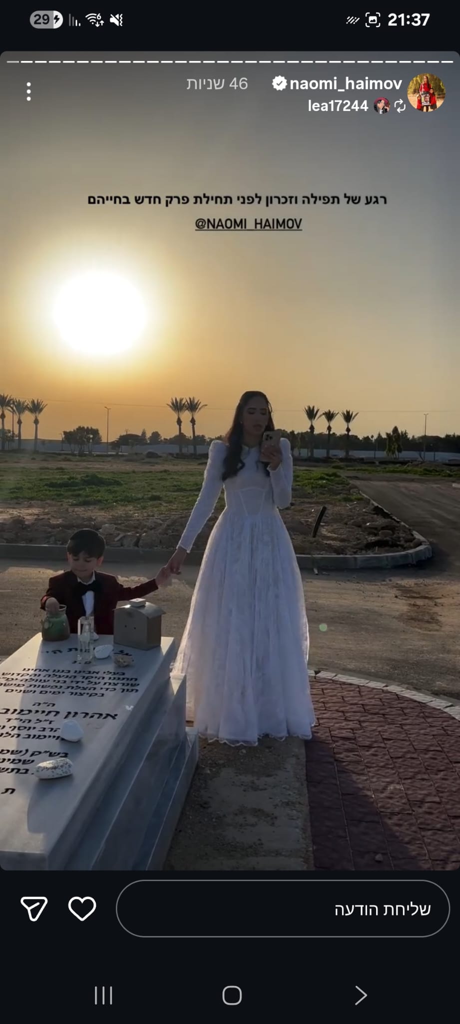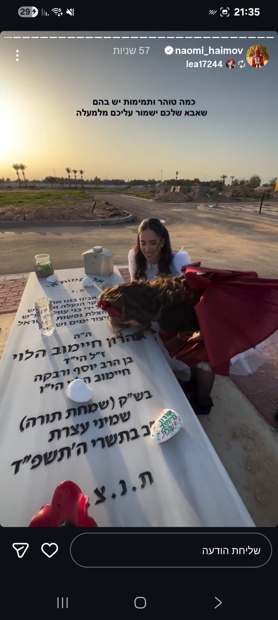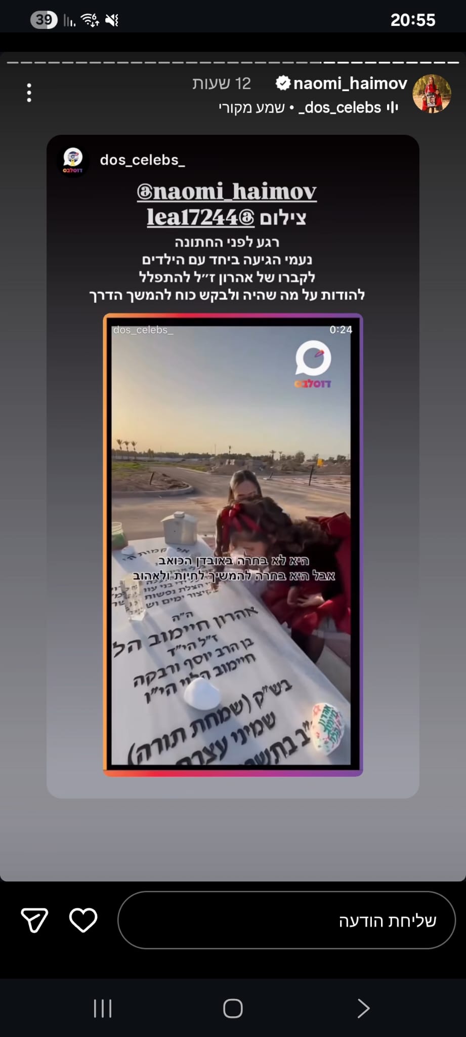 ואז בצחוק אומרת לו "אני ממש רציתי שניפגש בסוכה ונוכל ביחד יהודי דתי וערבייה מוסלמית דתיה אך אילוהים לא רשם לנו את זה" , צחקנו יום שלם על זה אך לא ידעתי שבעוד כמה ימים נאבד אותו ובצורה הזאת 💔 עצוב שובר הלב, נורא חסר לנו בתחנה עם החיוך המיוחד שלו, תמיד אהב לעזור, כולם אהבו אותו, אין בן אדם שפגש אותו ולא התחבר אליו, אהרון היקר הכי לא קשור לפוליטה/שנאה, אחד האנשים הכי טובים שפגשתי בחיי עם לב לבן כמו תינוק ,מלאך 🤍 מתגעגעת מאוד לכל הצחוקים והשירים איתו באמבולנס המשמרות הכי כיפיות.