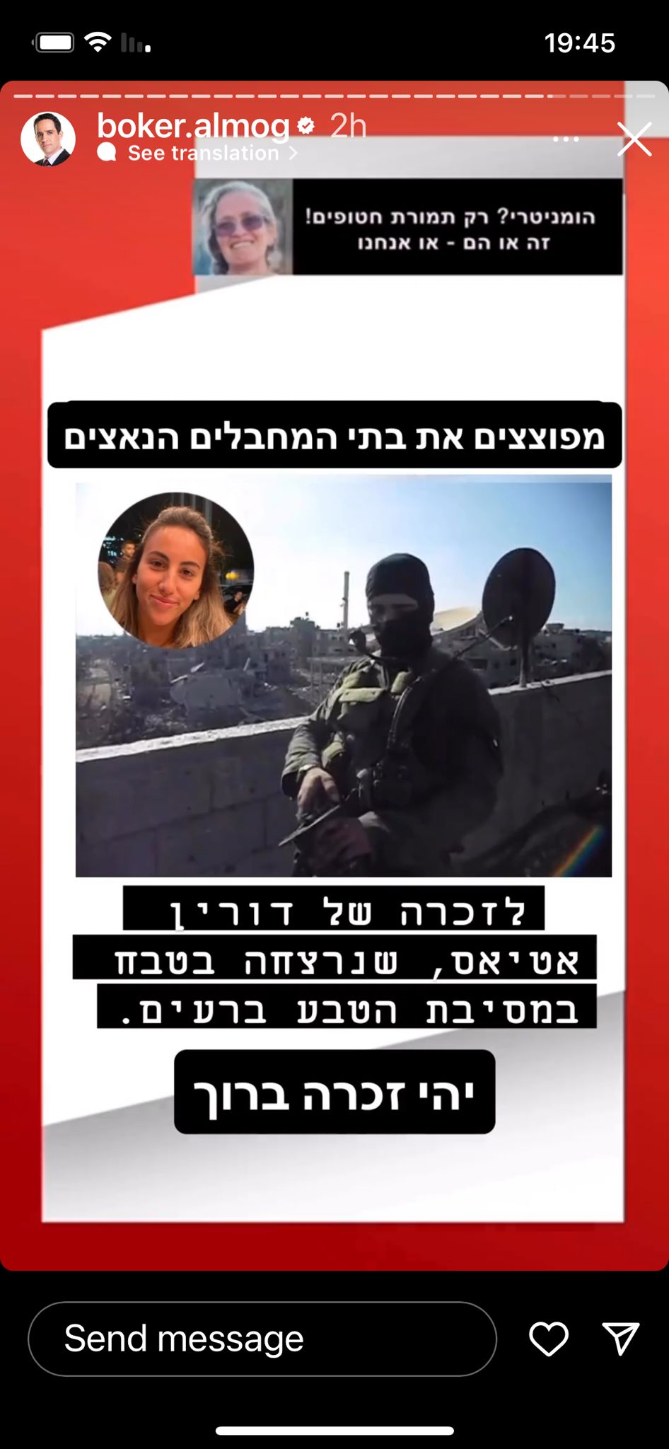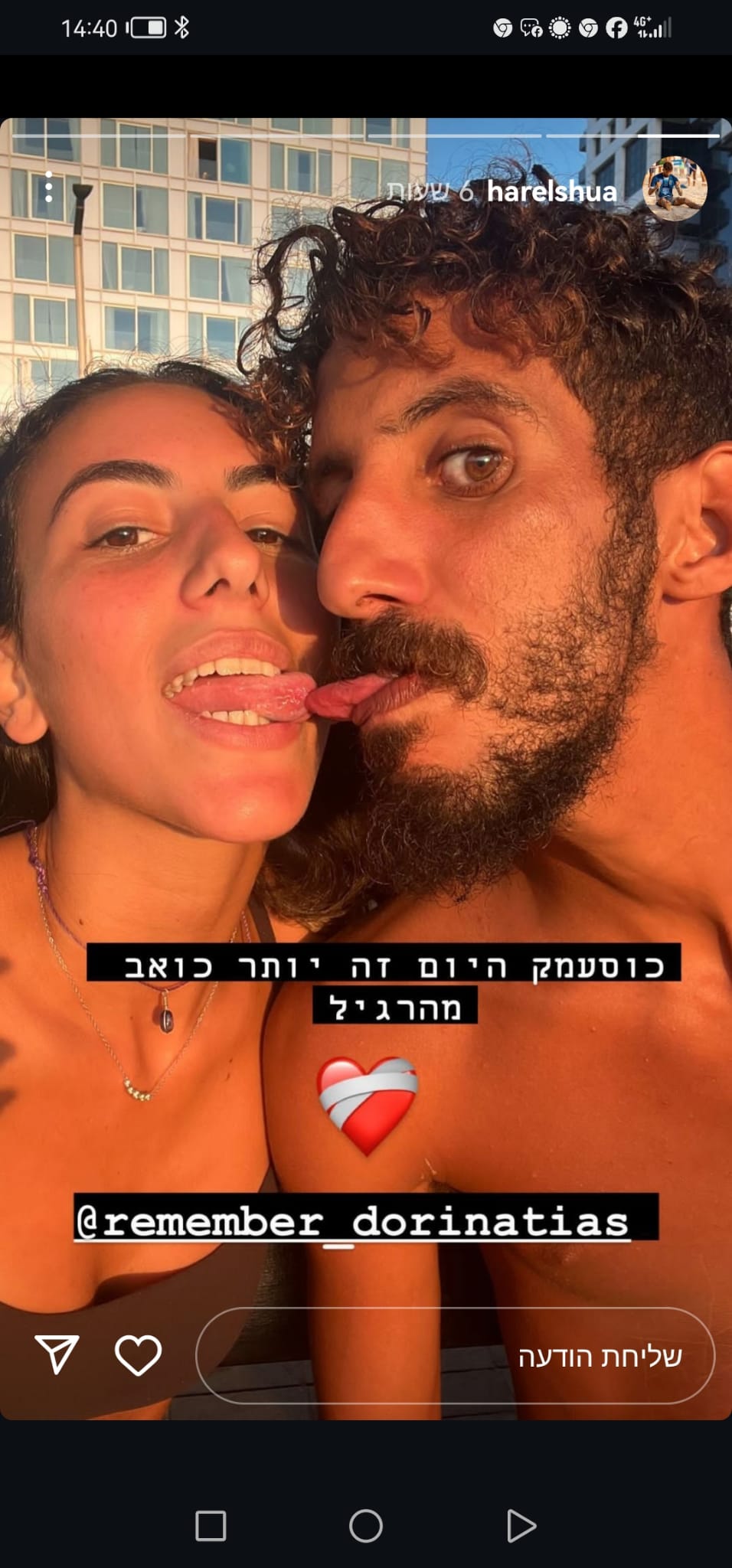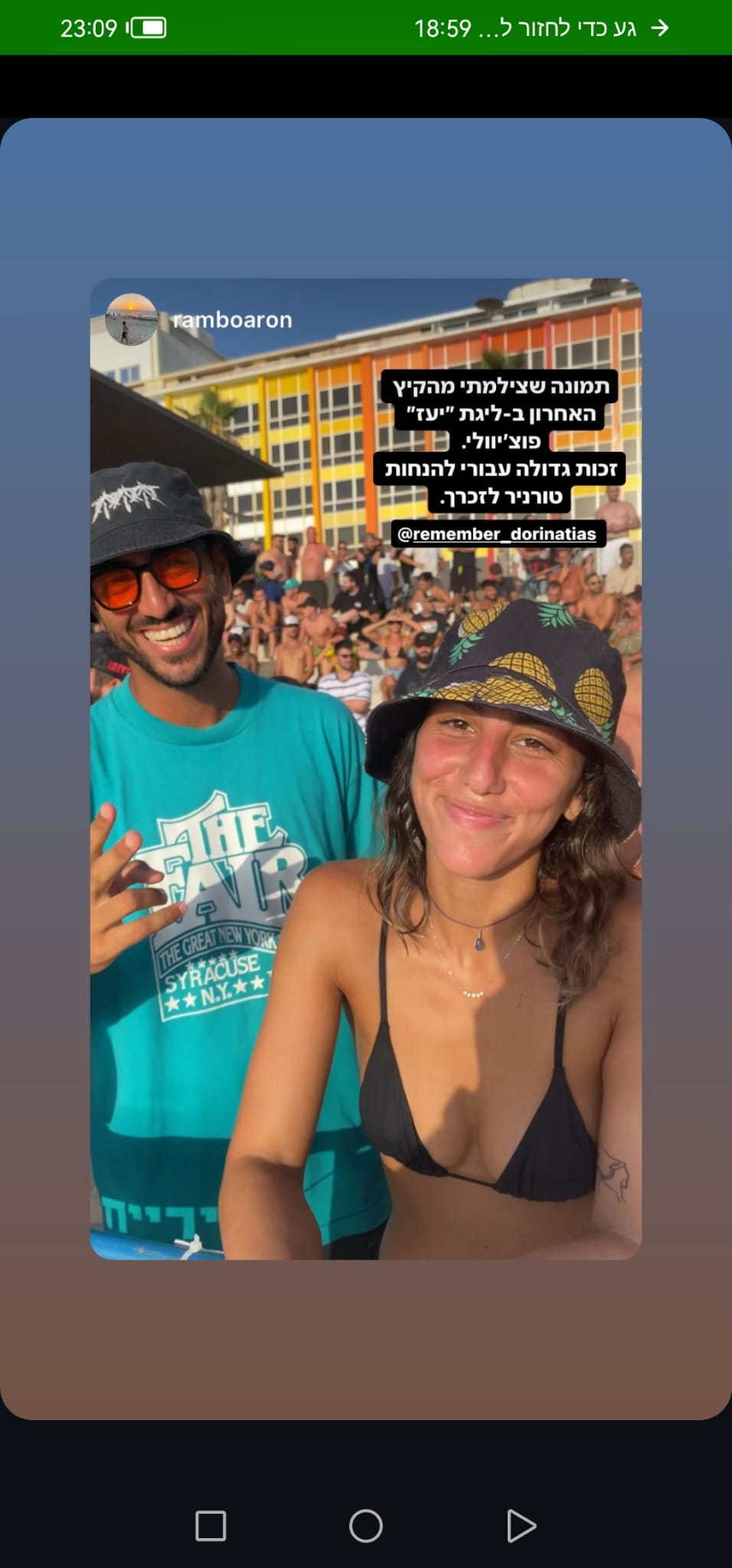 דורין הייתה איתי בנובה, ישבה איתנו בקאנטה על המסיבה, רקדנו ביחד ברחבה כרגיל מחייכת וגורמת לכולם סביבה לחייך. דורין באה לעבוד בנובה בערך 20 דקות לפני שהתחיל האסון. היא הלכה לברר מתי היא עולה לעבוד זה היה 20 דקות שכבר לא ראינו אחד את השנייה…💔