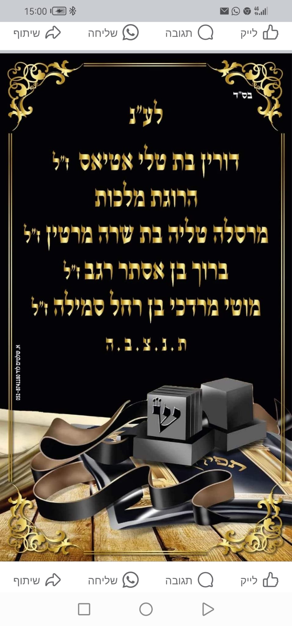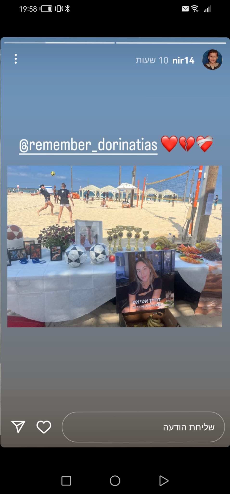 אזכור אותך לנצח דורה שלי וכל חיי אדאג להנציח אותך. עשיתי את הקעקוע שלך רק כדי שמשהו קטן ממך ישאר איתי כל החיים, בטוח שניפגש בגן עדן. אני מתגעגע אלייך ואוהב אותך ❤️
