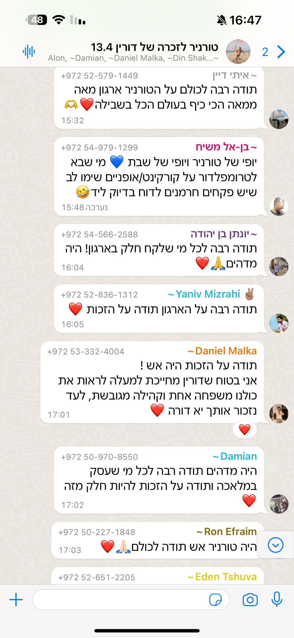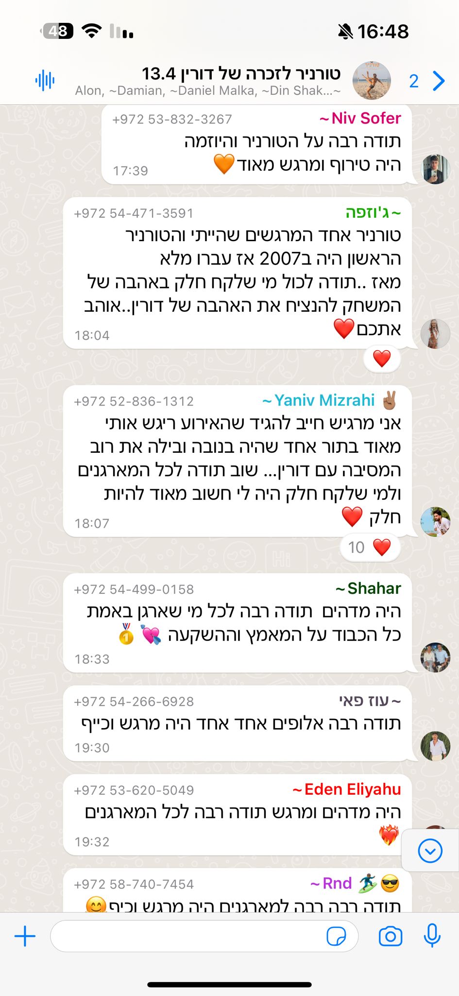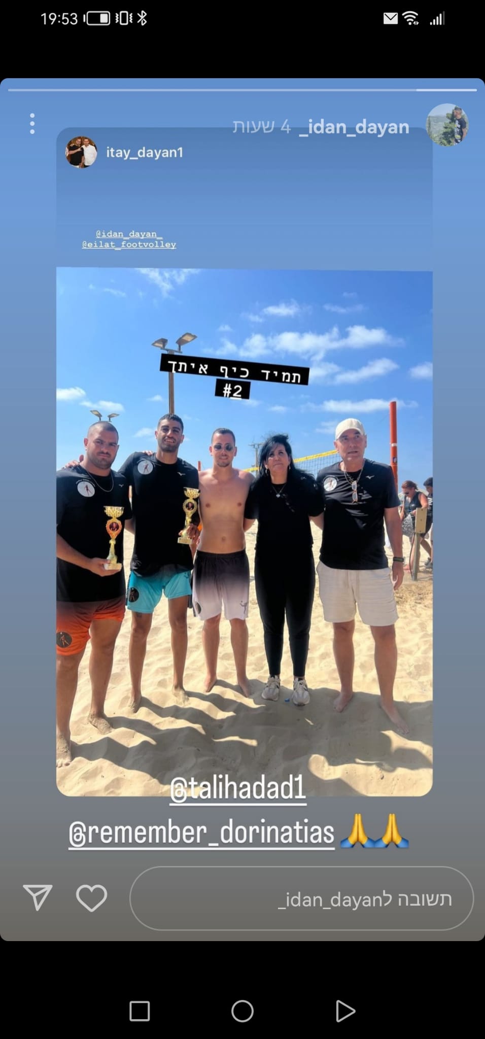 דורין, חוויתי איתך אין-ספור חוויות בברזיל ומאות פעמים שהתגלגלנו מצחוק את היית כמו חבר הכי טוב שלנו בחבורה של כמה גברים, ואת בת יחידה בתוך החבורה הזאת, אך ללא ספק הכי אהובה.