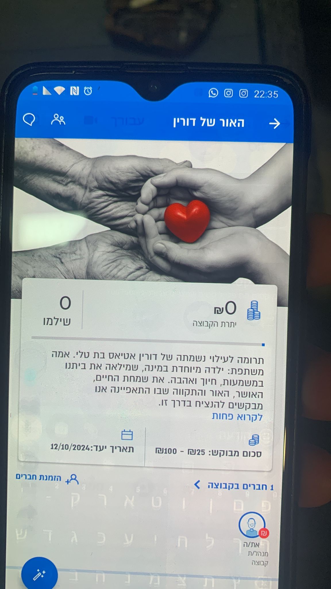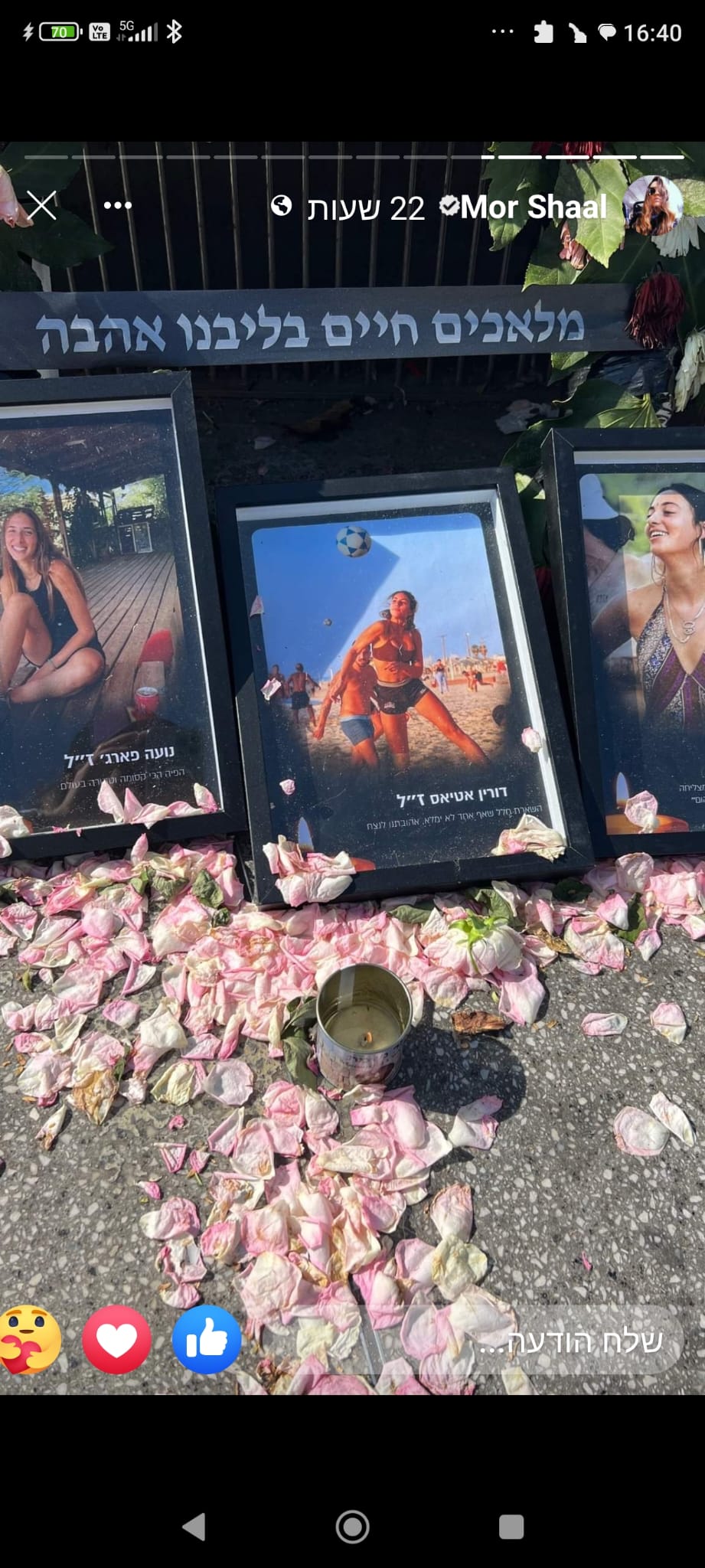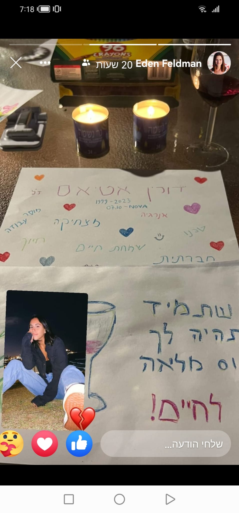 אוהב אותך מאוד ומקווה שאת מסתכלת עלינו מלמעלה, רוקדת ושלווה🙏