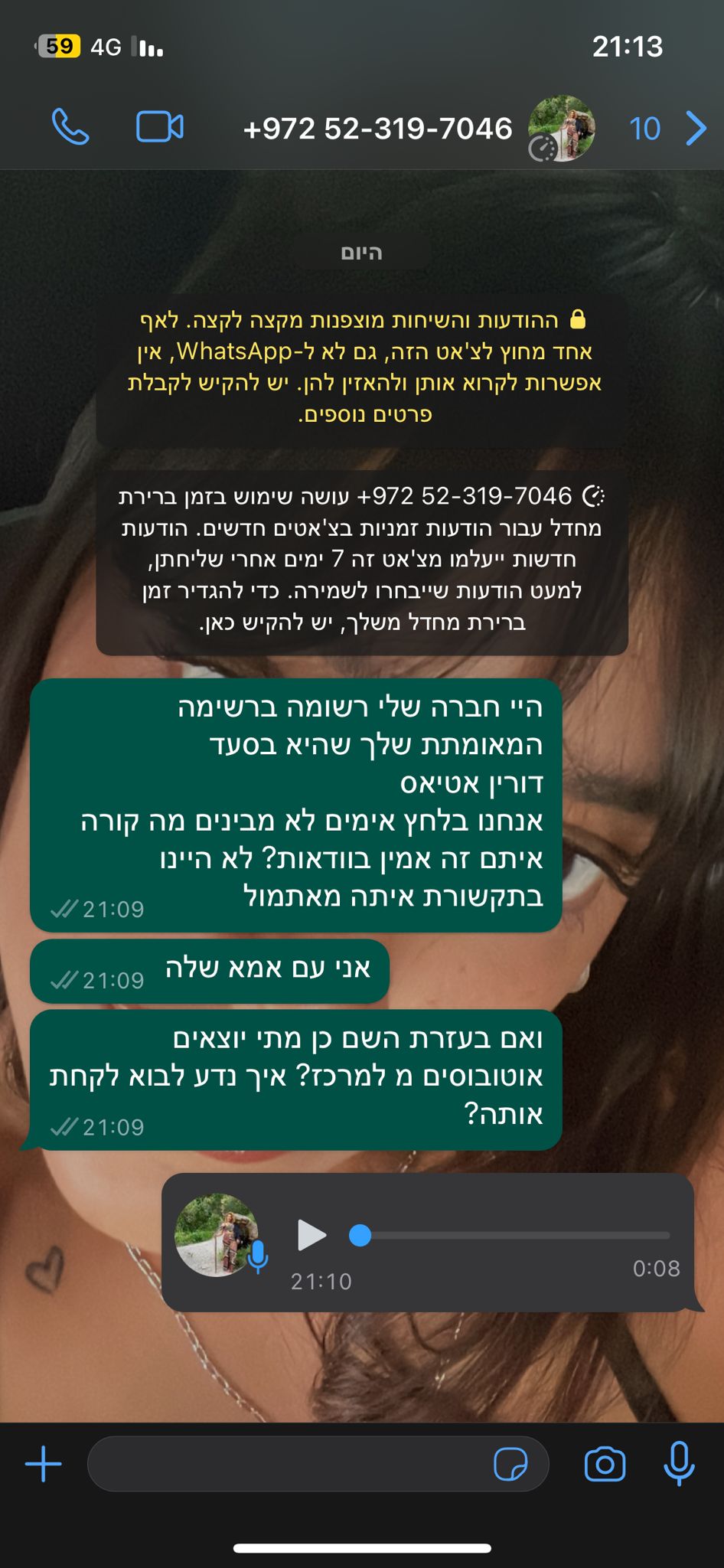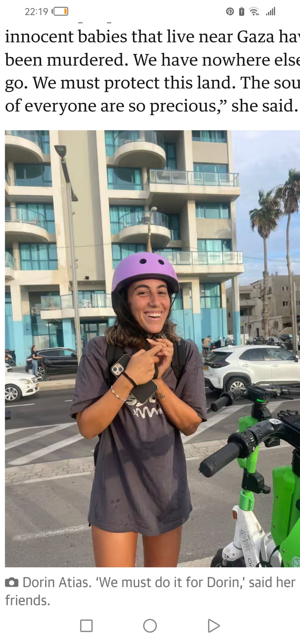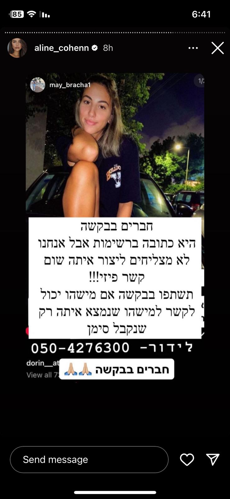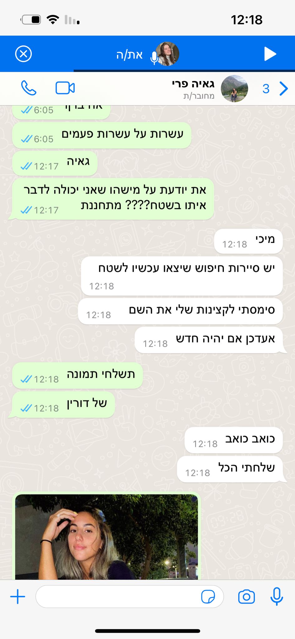 בשעה 6:29, היא התקשרה להגיד שיש ירי טילים על ישראל, ובשעה 6:34 היא שלחה הודעה שהם בסדר כי היו כבר אזעקות בכל הארץ.
