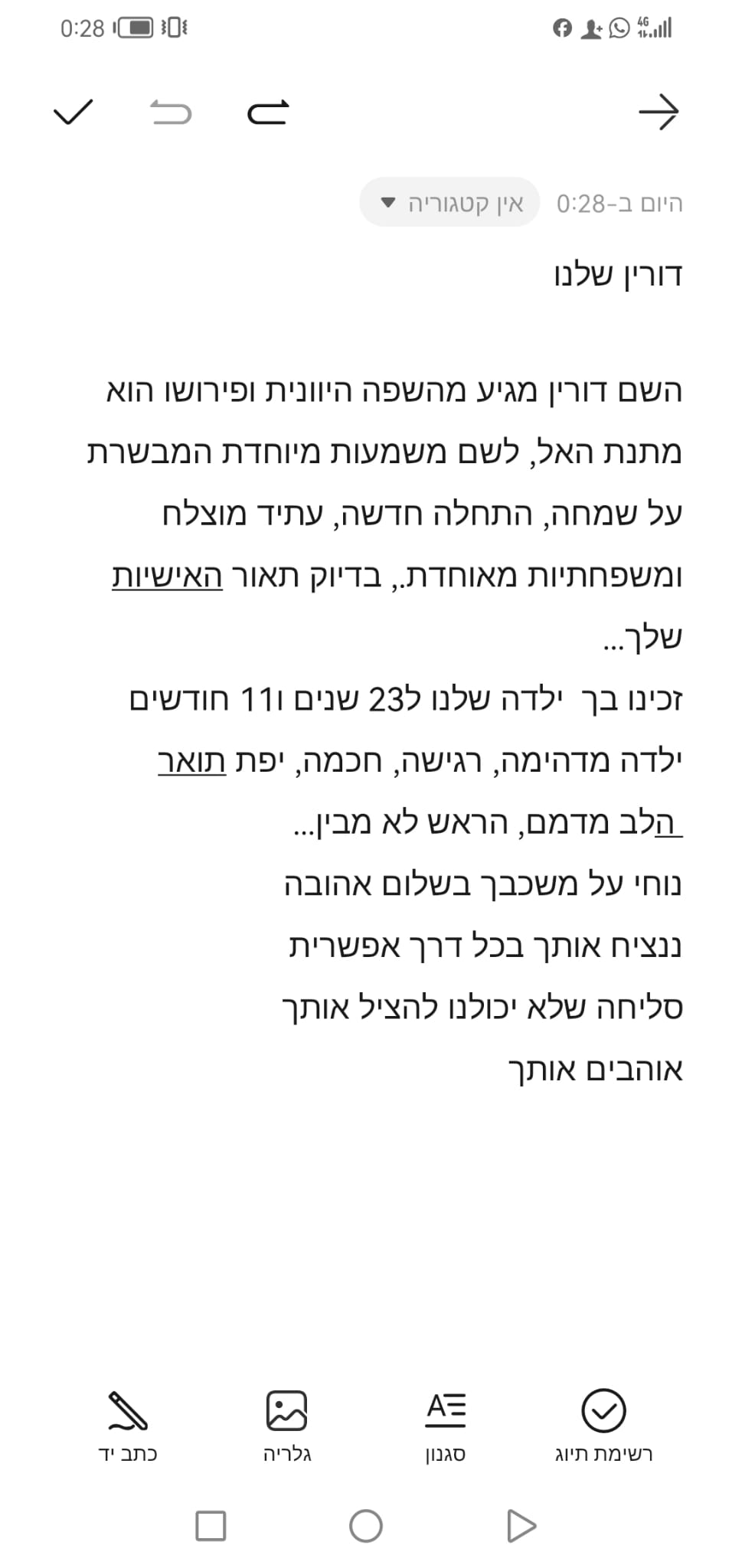 אני כל רוצה לשמוח ומצד שני חושבת איך דורין לא כאן?
