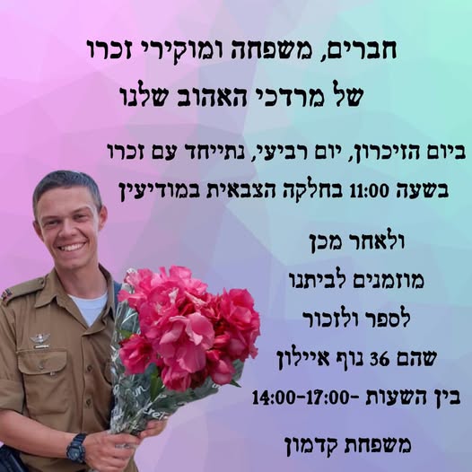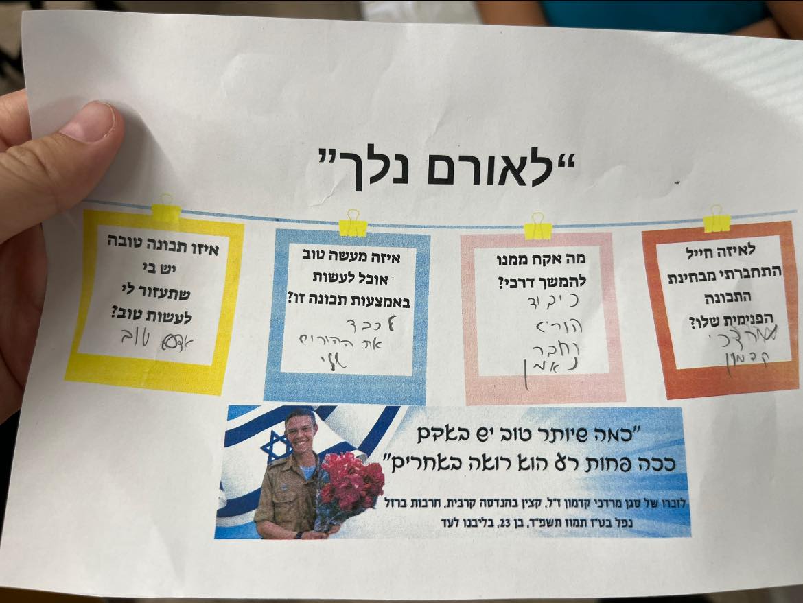 הלכת עם האמת שלך, היית בטוח במה שאתה חושב אבל תמיד היית בתהליך של בירור של של ראש פתוח לשמוע ולהקשיב תודה על הזכות ללימוד איתך בשנתיים בישיבה, תודה על הזכות לברר ולהתברר יחד איתך בנושאים כל כך חשובים, תודה על הבדיחות תודה על הביקורים, הטיולים, העזרה בכל דבר שהייתי צריך שבקשתי ושפשוט שמת לב לבד ועשית מתוך רגישות והלב הטוב והמיוחד שלך.