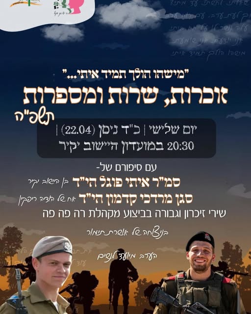 יש בי רצונות לעשות כמה שיותר דברים לכבודך(אני די בטוח שאם לא אעשה לא תכעס), אבל האמת שזה לא קל לי, אין לי מספיק רעיונות, והאמת שגם קשה לי לעשות הרבה דברים עכשיו, כי אתה יודע סיימתי בדיוק עכשיו את ה'הסדר', ומתחיל לעבוד ולחפש כיוון לחיים, ובדיוק עכשיו עמוס במשימות, ועכשיו יותר מתמיד כל עשייה לזכרונך מלחיץ עוד יותר וגורם לזכור את החוסר בך שמתעצם, אז אולי כדאי פחות לחשוב על זה, וכמו ששמעתי מעוד חברים שכרגע התחושה היא שאתה עדיין בעזה ואמור לחזור עוד שבועיים-שלושה, אז לא מורגש ביתר שאת, שאתה איתנו כבר ממקום נוסף.