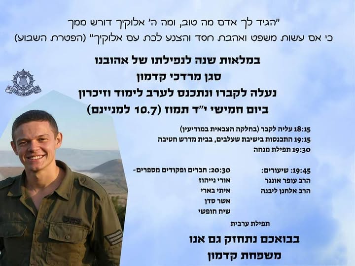 סגן מרדכי קדמון הי"ד נפל בעזה