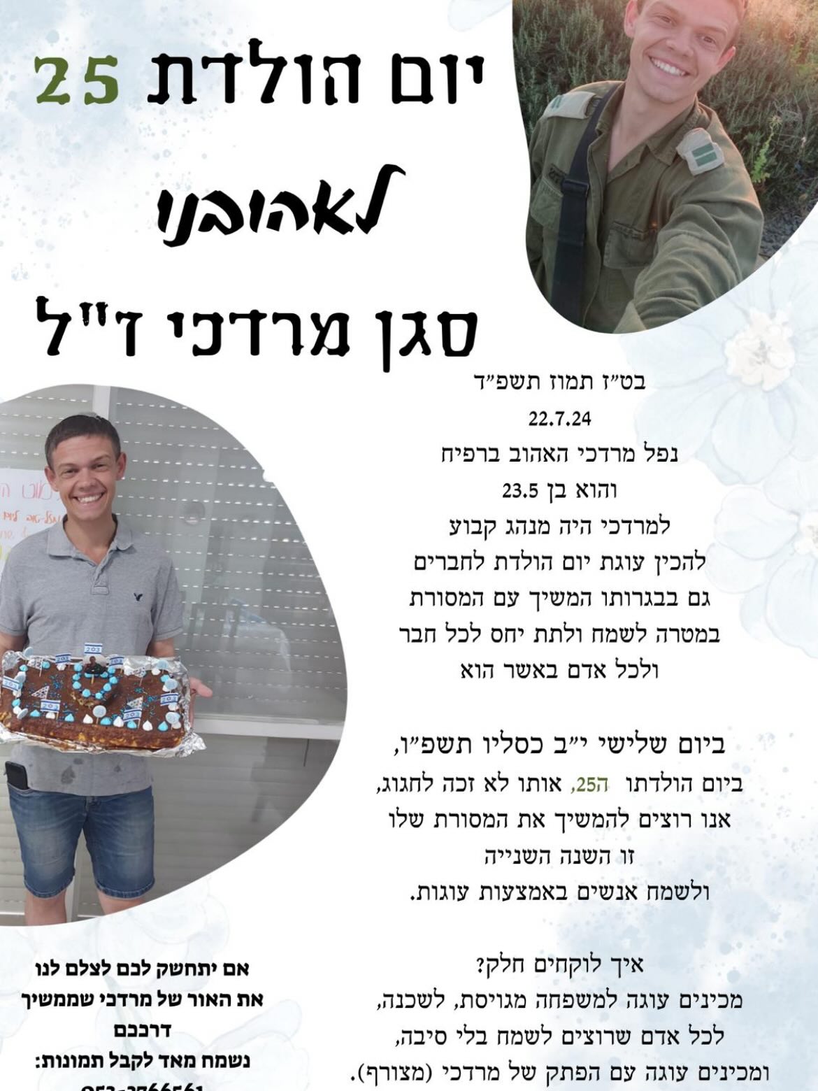 בתמוז תשפ״ד, לפני קצת יותר משנה וחצי בלילה קשה ומסוייט, בחלקה צבאית מעל קברו הטרי של אחי אהובי, הבטחתי קבל עם ועדה ו-ynet שיהיה לי בן יפה כמוהו, ובשמו אקרא לו - מרדכי.