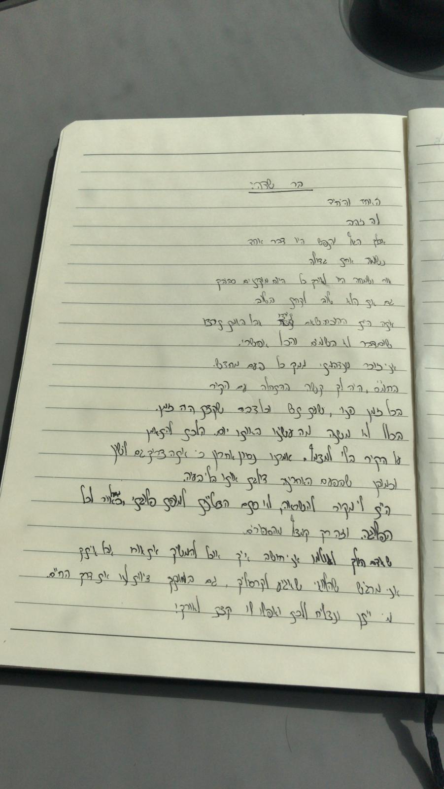 מי היה מאמין שאצטרך לכתוב מכתב פרידה, גם כשהתרחקנו בתקופות מסוימות תמיד ידעתי שנשאר בקשר ושנהיה חברים גם כשנהיה מבוגרים, תמיד היה כיף לשמוע ממך מה איתך ועל הדברים שקורים לך בחיים…. לטוס לסרי לנקה ולקולומביה לבד לפני הצבא זה לא דברים שקורים ביום יום, ככה שתמיד היה נחמד להשתמע.