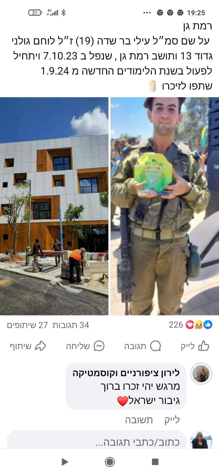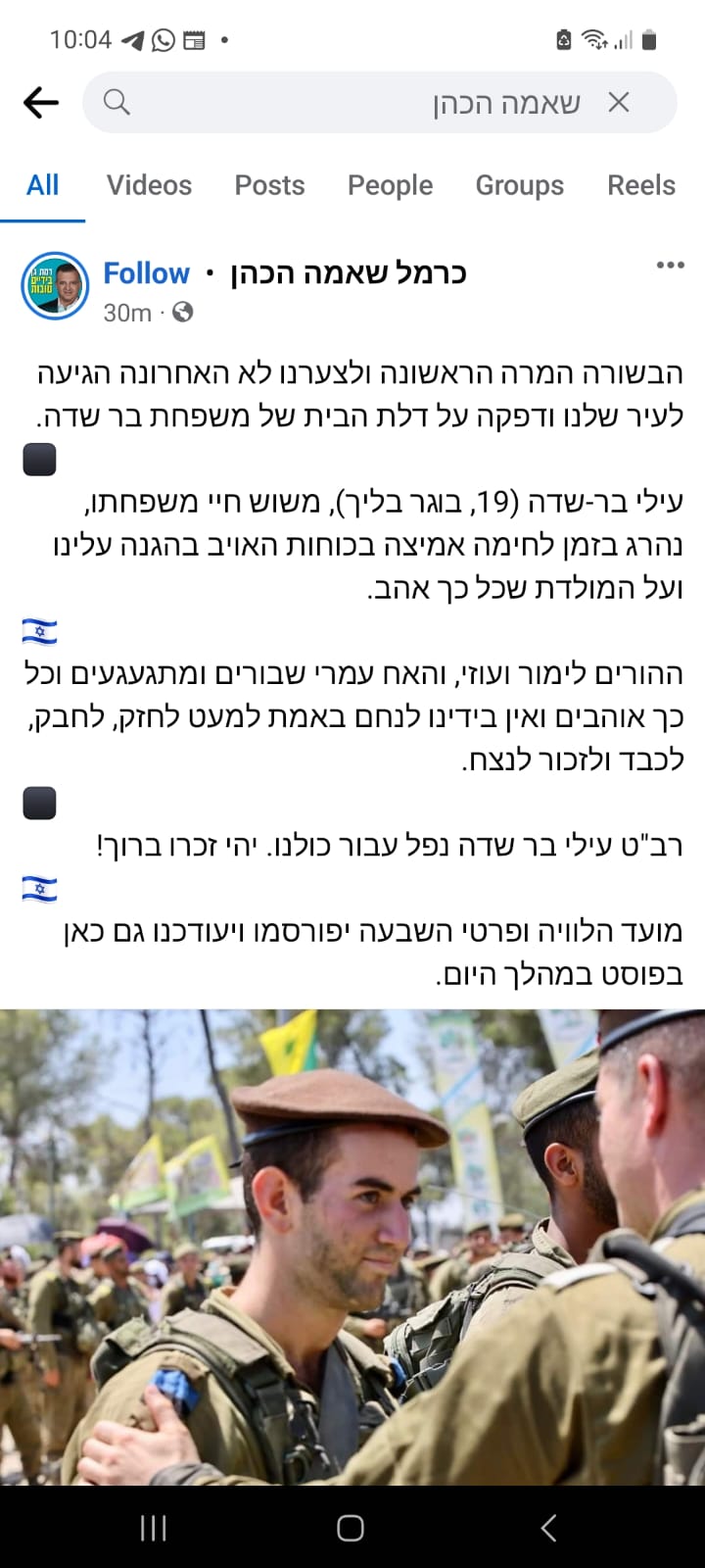 עילי, תודה גיבור ישראל , לעד נזכור תנוח על משכבך בשלום💖💖 יהי זכרך ברוך אמן 🙏. השם ינקום דמך.