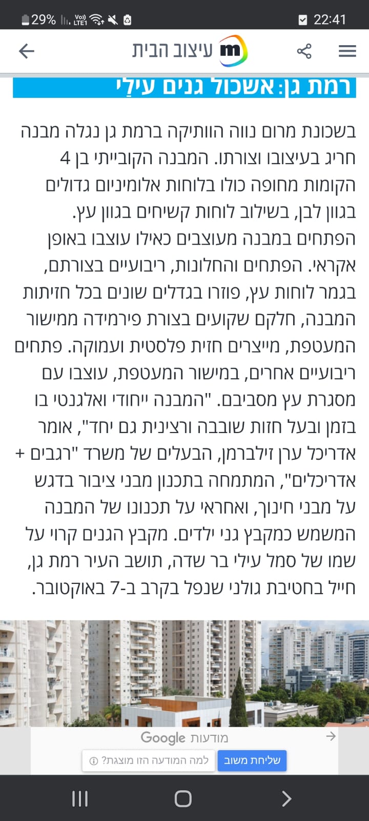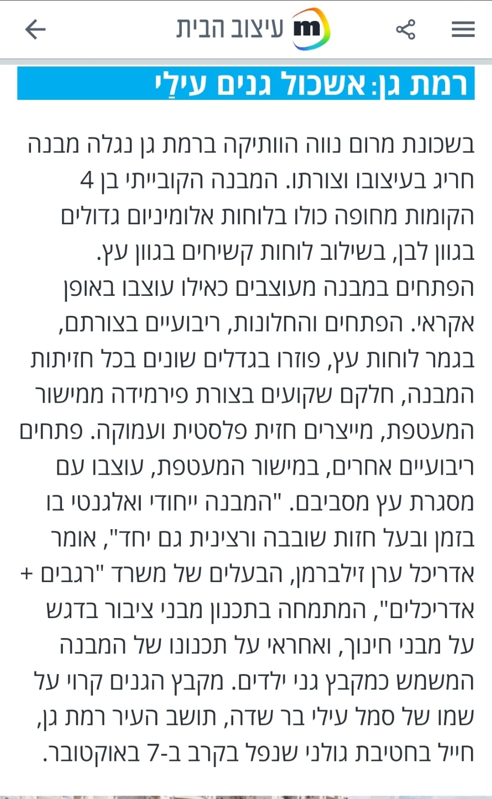 אשכול גנים חדש ברחוב רימלט שבמרום נווה רמת גן
