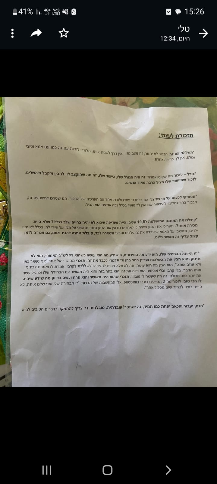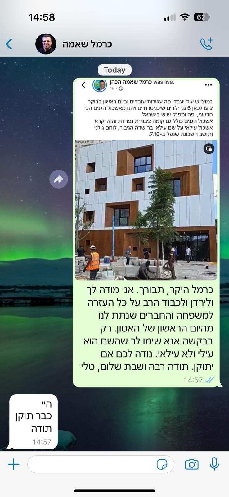 מאחלת לי, למשפחתי ולכל עם ישראל שנדע ימים שקטים יותר ושתשרור אהבה ולכידות בין כולנו.