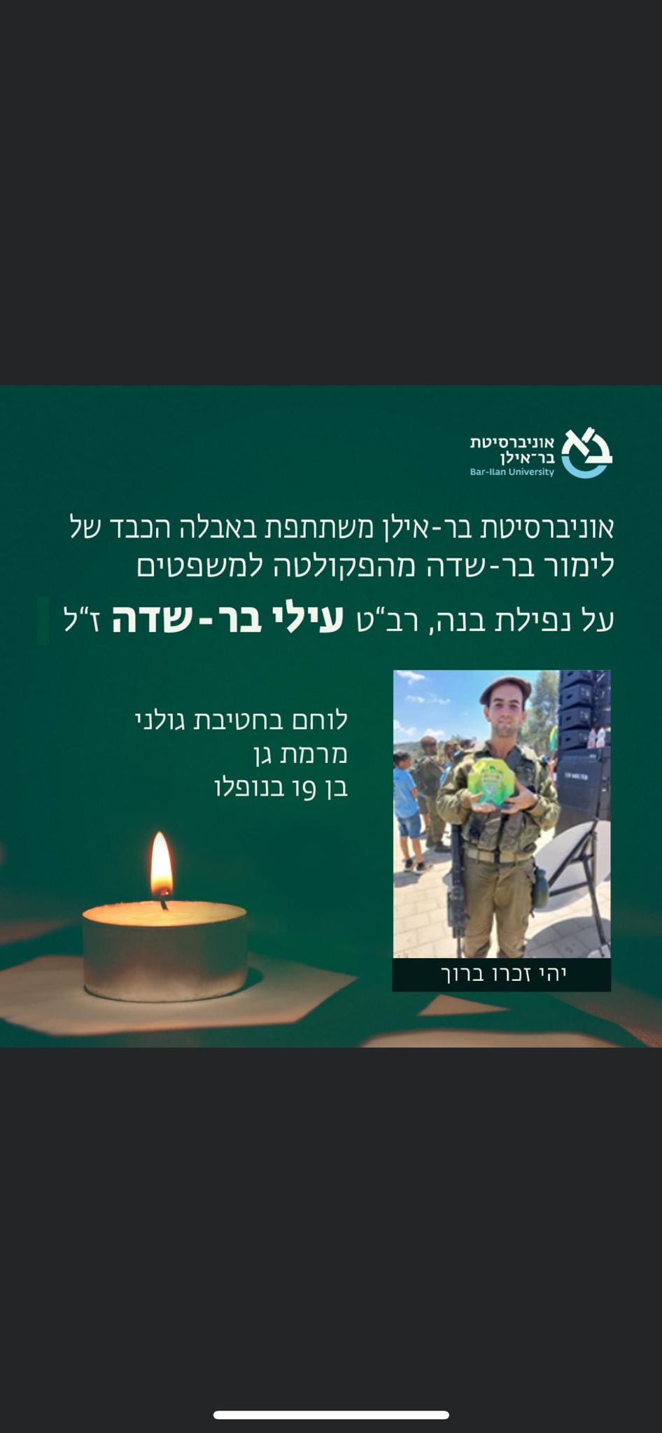 נזכור את כולם. לימור האהובה תהיי חזקה. ממשפחת הבוגרים של משפטים בר אילן