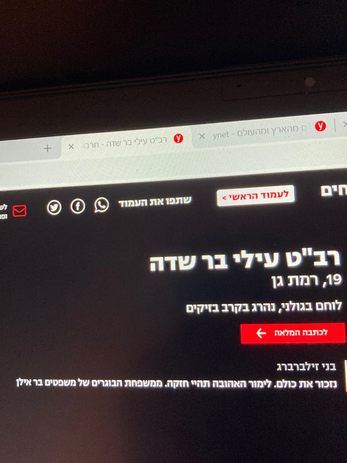 בני זילברברג Ynet - הנרצחים והנופלים – כתבו לזכרם