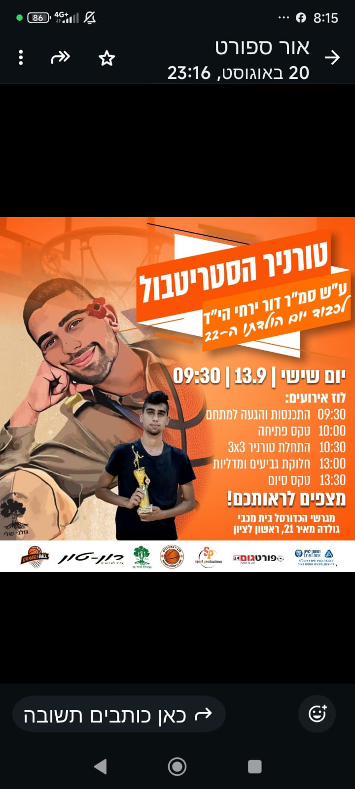 על שם סמ״ל עילי בר שדה (19) ז״ל לוחם גולני גדוד 13 ותושב רמת גן , שנפל ב 7.10.23 ויתחיל לפעול בשנת הלימודים החדשה מ 1.9.24