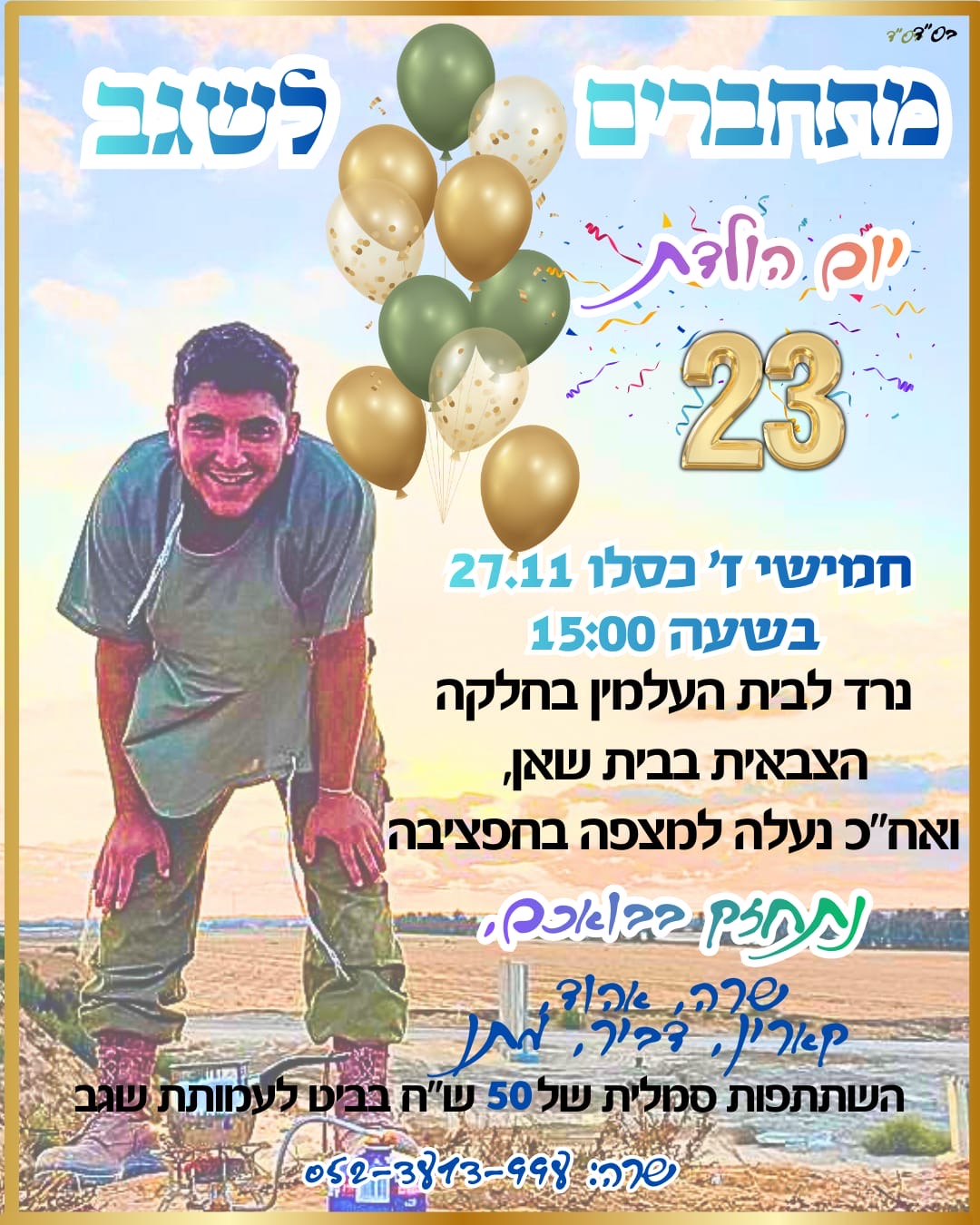 שגב ילד של חיבורים , אהבה שמחה וביחד ניטמן בחלקה הצבאית בבית שאן חודש לאחר קבורתו חגגו לו חבריו יום הולדת 20