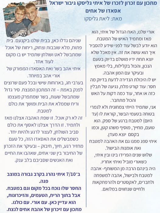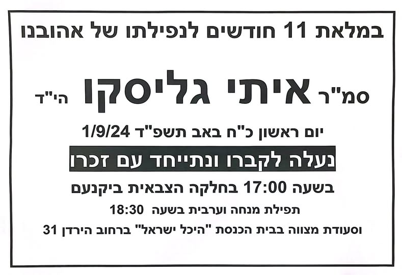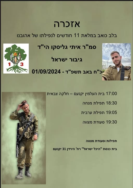 משפחה וחברים יקרים אנחנו מודים לכם על התמיכה והעזרה בכל הימים הקשים שעוברים עלינו אמן ונישאר חזקים ומאוחדים כמו שאיתי היה רוצה.