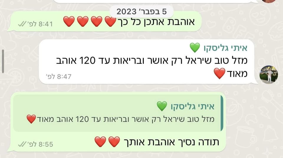 יודעת איתי שלי, שצריך להרים את הראש ולהלחם על החיים בדיוק כמו שאתה עשית ומקווה לכוחות בהמשך, כי ככה היית רוצה לראות אותי- חזקה כמוך!