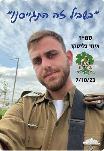 איתי גליסקו - שכונה "גליסקו האגדי" וחלם להיות שף ותכנן לפתוח מסעדה בארצות הברית אחרי השחרור - היה הסרס"פ של פלוגה ג', "טורפי הלילה" בגדוד 13 של גולני. בבוקר ה7 באוקטובר הוא היה יחד עם כ30 חיילים במוצב "פגה", 500 מטרים מהגדר, סמוך לנחל עוז.