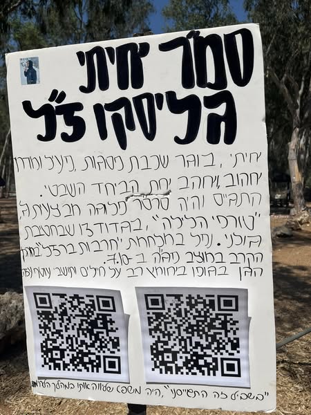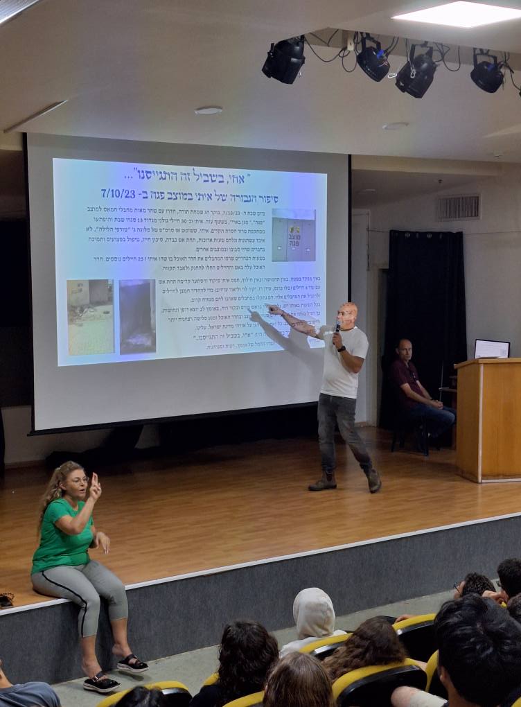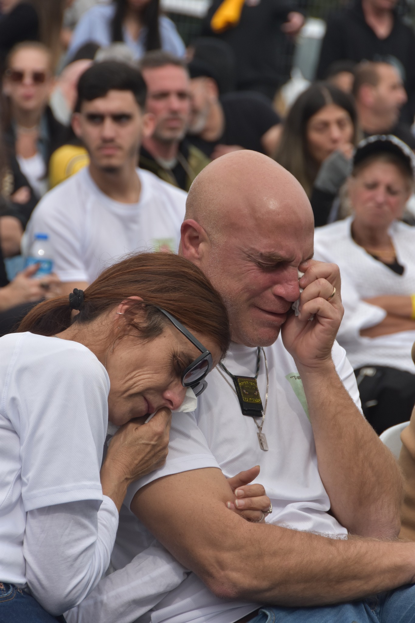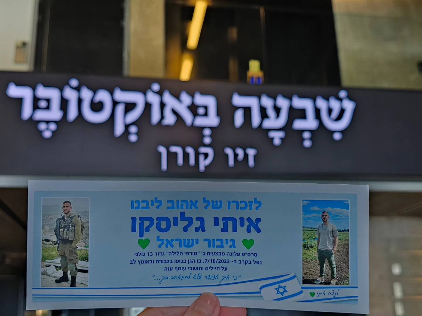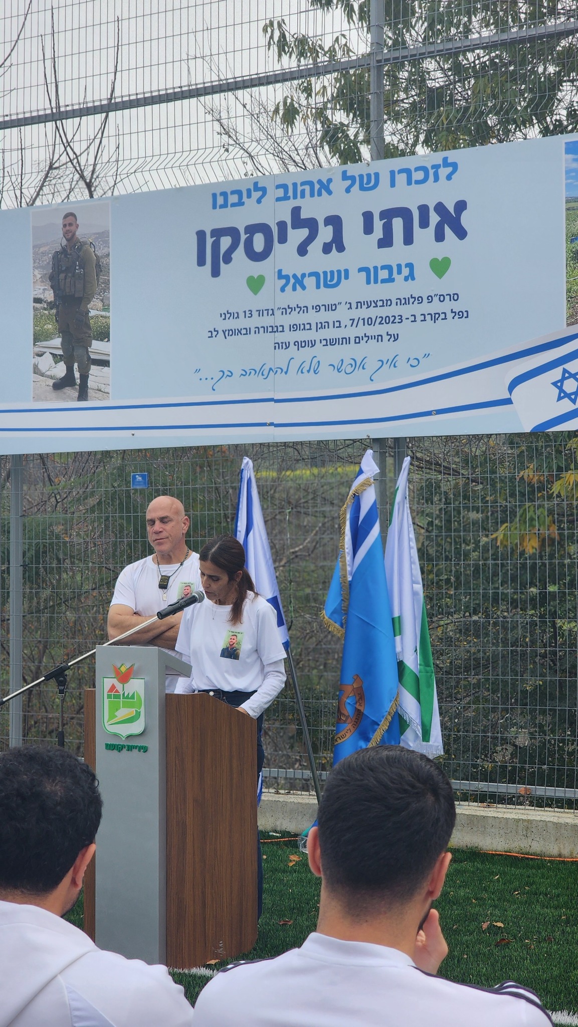 אני מבקשת מכולם כאן להזכיר ולזכור בכל רגע שאנחנו כאן בזכות הלוחמים של ה7/10..41 לוחמים של פלוגה 13 של גולני נהרגו בשבת הארורה ההיא. ללא לחימתם העיקשת וההירואית, רובם ילדים וילדות בני 20, כמות ההרוגים והחטופים היתה פי כמה אלפים! אנחנו מבקשים שתזכירו אותם בכל רגע ואת הגיבורים שהיו, כמו איתי שלי, כי בלעדיהם לא היינו עומדים כאן היום.