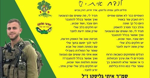 אנחנו שולחים כוחות לחבריך בפלוגה ולכל הלוחמים בכל הגזרות ומקווים שהפעם ננצח באמת, לחברים של איתי תהיו חזקים תמשיכו את דרכו וביחד ננציח אותו.