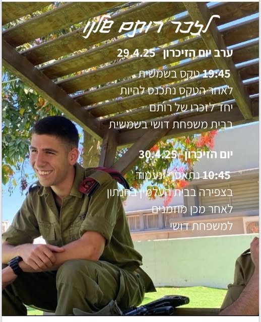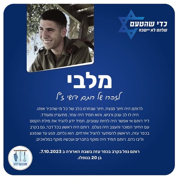 רותם, תודה גיבור ישראל , לעד נזכור תנוח על משכבך בשלום💖💖 יהי זכרך ברוך אמן 🙏. השם ינקום דמך.