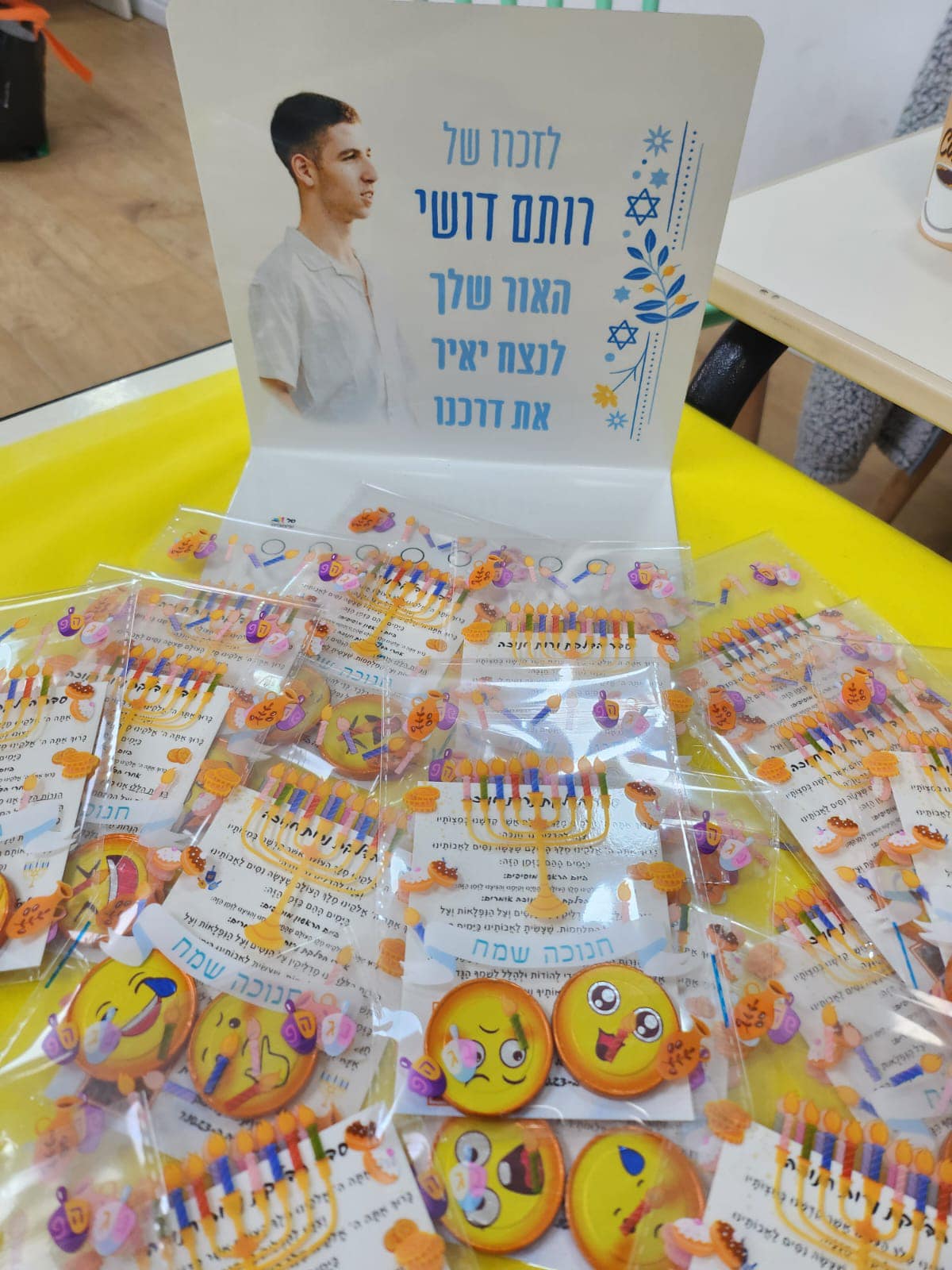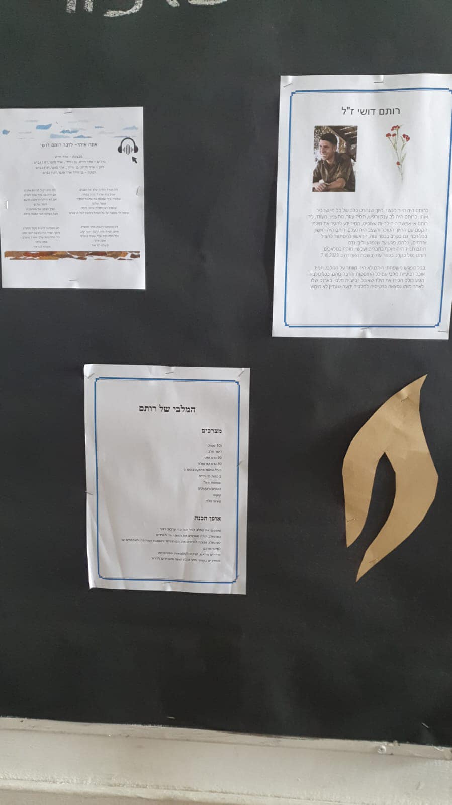סיפורו של חיוך ב 27/4/2003 נולד רותם, עם חיוך מתוק מתחת לחוטם. חיוך ביישני, חיוך ממיס, חיוך מושלם, רותם והחיוך לא נפרדו מעולם. יחדיו הלכו לגן, ביחד עשו שטויות ובלגן, ביחד הציקו למחנכת, כשבמקום לכעוס הייתה... מחייכת. כי החיוך של רותם היה ממכר, הוא מיד הפך אצלו לסימן ההיכר. חייך לאחיו, להוריו, לחבריו, חייך כשירד גשם וגם בשרב. חייך למורים חייך למורות, חיוך שובב שחשף שיניים צחורות. בכל עמק יזרעאל הוא כבש לבבות, חדר לליבם של רבבות. כך גם היה כשהתגייס לצבא, הגיע עם חיוך מלא אהבה. כמובן שהמיס גם את לב מפקדו, שמיד דאג שרותם ישרת לצידו. אבל, היה אחד שליבו לא נמס, והוא המפלצת מהחמאס. הוא לא חייך, הוא לא צחק, סחט את ההדק והחיוך נמחק! ואנחנו כאן, משפחת דושי-שלכת, משפחה שכבר חודש אינה מחייכת, כי החיוך של רותם כעת עטוף בתכריכים, והוא לבטח כובש את לב המלאכים. אוהב ומתגעגע יובל.