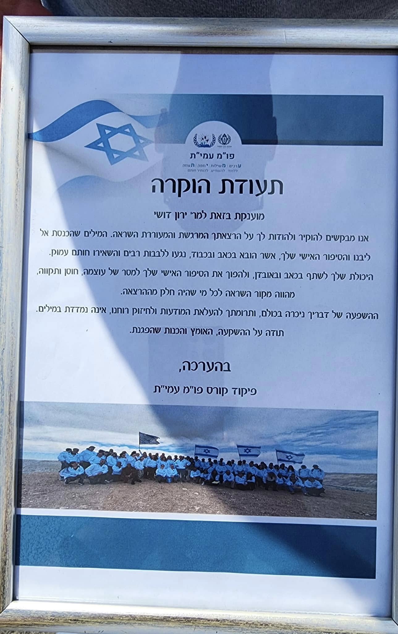 התגייסת לגדוד 890 כלוחם ומילאת לנו את הלב בגאווה אדירה. לוחם עם כומתה אדומה, אבל תמיד היית צהוב בלב ובנשמה. תמיד ראשון בכל דבר, גם בחלקה הצבאית. אין אחד שלא הכיר את דושי החייכן המצחיק החבר עם הלב הכי גדול שיש. עם שמחת החיים שלך היית מדביק את כל מי שלידך..