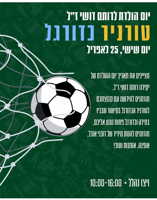 ביום שבת ה 27.4.2024 חגגנו רותם את יום ההולדת ה 21. את יום ההולדת בדיוק כמו שרותם היה מתכננן לעצמו: טורניר כדורגל לזכרו – נרשמו כ - 24 קבוצות, דוכני מזון, יריד דוכנים, מוסיקה טובה וכל מה שרותם אהב הרבה ועוד יותר הרבה חברים שלו מכל תקופות החיים, בני משפחה, חברים של המשפחה ואנשים שלא ממש הכירו אבל שמעו על רותם. הגיעו מעל 1000 חוגגים לזכרו של רותם.