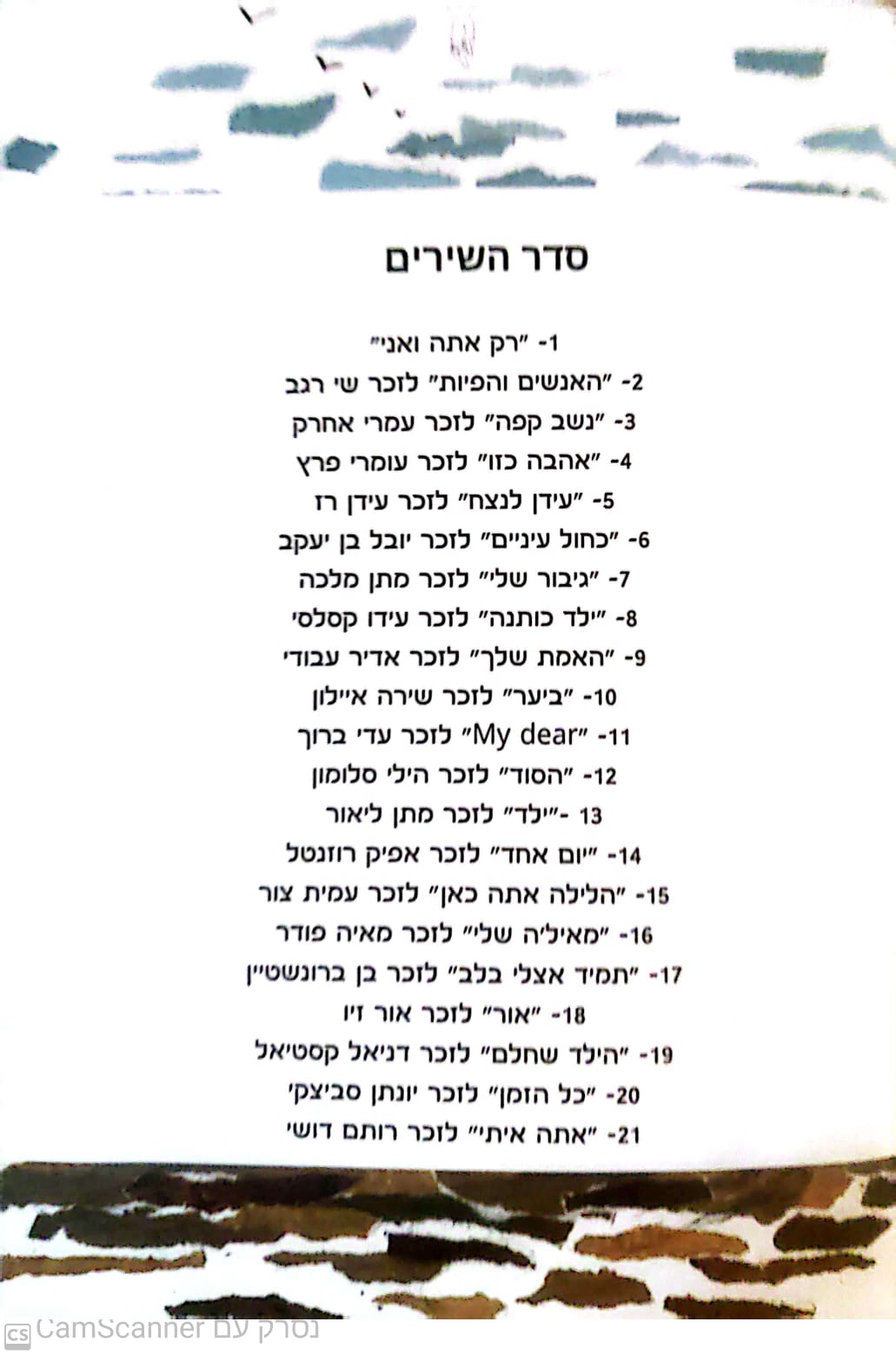 אתה ואני קרובי משפחה רחוקים... לא הכרנו וכנראה שגם לעולם לא נכיר...ועדיין יש לי חור בלב , פצע שלעולם לא יגליד אתה מלאך שאיבד את כנפייו💔 נלחמת עבורי ועבור כולנו...גם אלף תודות ואלף סליחות לא יעזרו הנה ציטוטים מכמה שירים שאני אוהבת... "It's too late to apologize..." של להקת OneRepublic "כל מה שלא הספקתי לומר , עובר מול העיניים ונשבר , אם יש איזושהי מחילה , קח אותה ממני בשבילך." רן דנקר , עילי בוטנר וסיוון טלמור. "a ver que se siente , cuendo el amor es de barro , y se cae , se desase y se cuela entre las manos corazon hecho pedazos , sin retorno de fracaso , solo un hueco del dolor , un agujero sin amor." להקת Erreway
