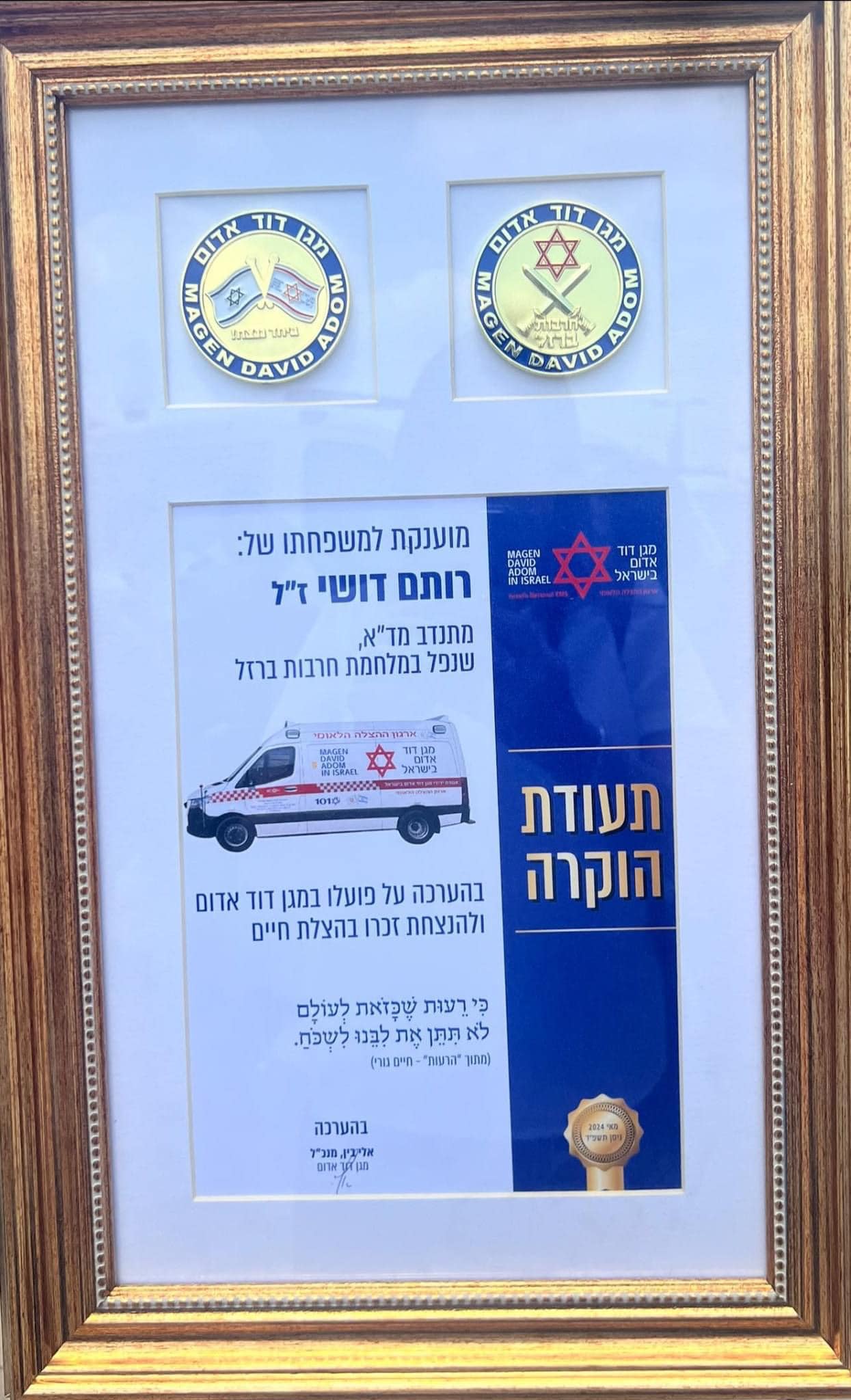 דושי תודה על 20 שנות חברות שעם הזמן הפכה לקשר של אחים לכל דבר תודה על כתף תומכת ברגעים קשים וחיוך שמפזר שמחה ואהבה לכל הסובבים אני רוצה להגיד תודה על זה שחתרת למגע ושמרת על אזרחי המדינה בדרום אבל אני יודע שאתה לא רוצה תודה על זה כי אתה מאמין בלב שלם שזה מה שהיית צריך לעשות אז אני רק אגיד לך שאתה גיבור ואני גאה להיות חבר ואח שלך לנצח תהיה בליבי