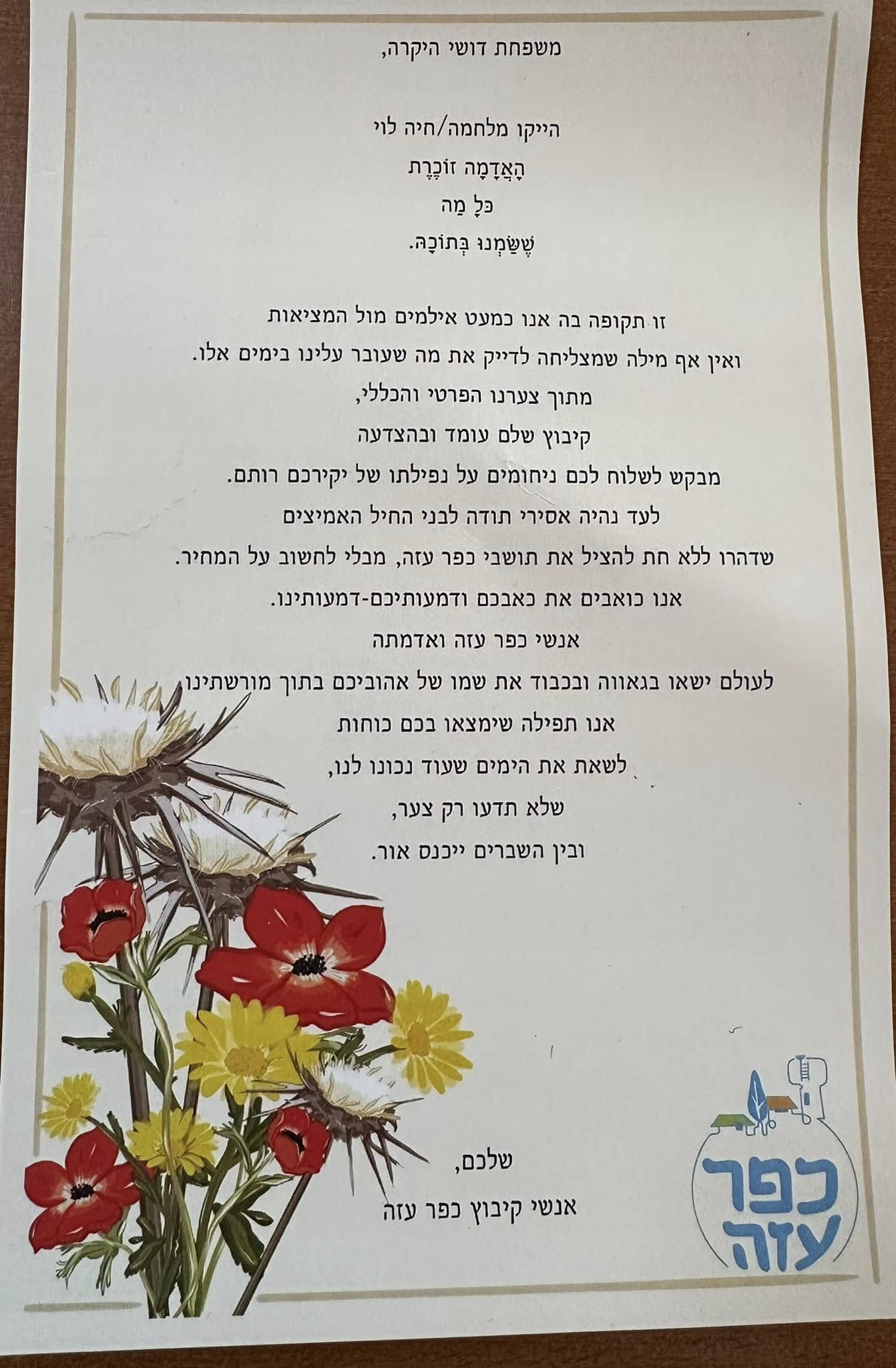 אני כותב לך עכשיו עם דמעות בעיניים ומחנק בגרון