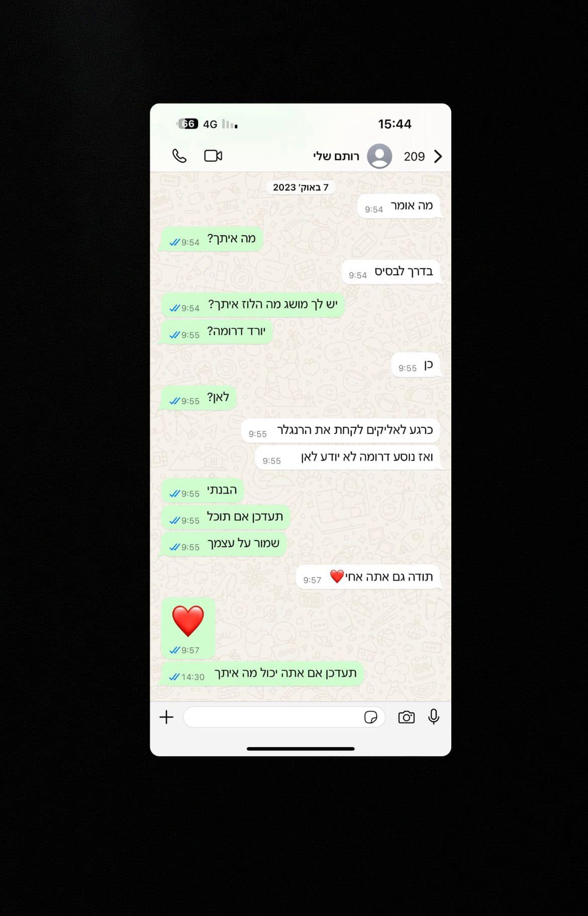 מרגע שהקפיצו אותך עד הרגע שהודיעו לנו את הבשורה כל הזמן דאגתי לך ושלחתי לך הודעות שלצערי לא הספקת לקרוא.