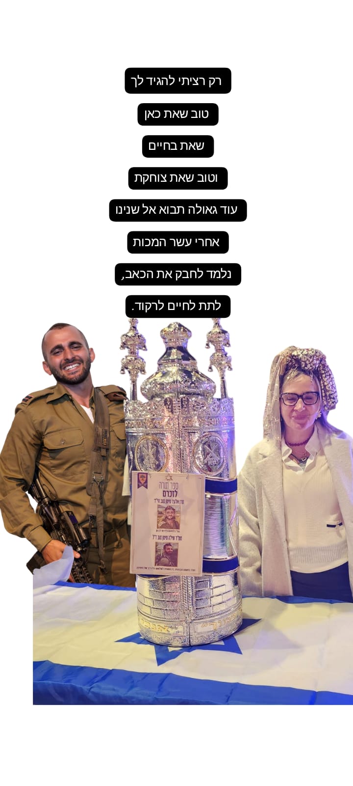 אלעדי, אח קטן ואהוב שלי, התהלכת בעולם בענווה גדולה וברוחב לב, בגדלות ומנהיגות והכל בצניעות רבה. אני רוצה לומר לך תודה שנלחמת והגנת עלינו ועל עם ישראל. תמשיך לשמור על עם ישראל מלמעלה