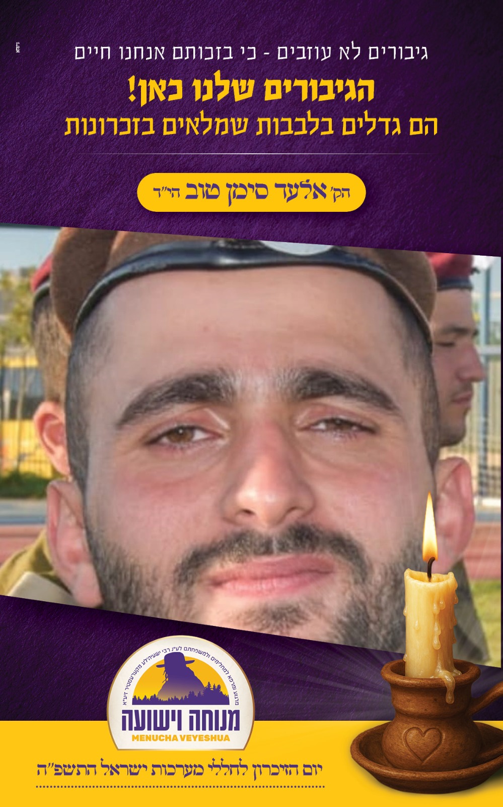 סגן אלעד סימן טוב נפל בקרב ביום ט"ו בתשרי תשפ"ה (16.10.2024). בן עשרים ושלוש בנופלו. הוא הובא למנוחות בבית העלמין הצבאי בפתח תקווה. הותיר אחריו הורים, שני אחים ושלוש אחיות.