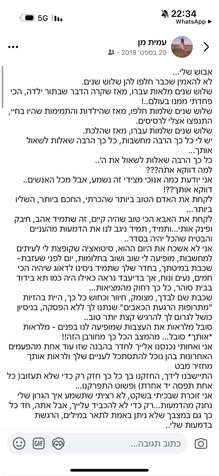 עמית אהובה, אלוהים יפרוש עלייך כנפיו לנצח
