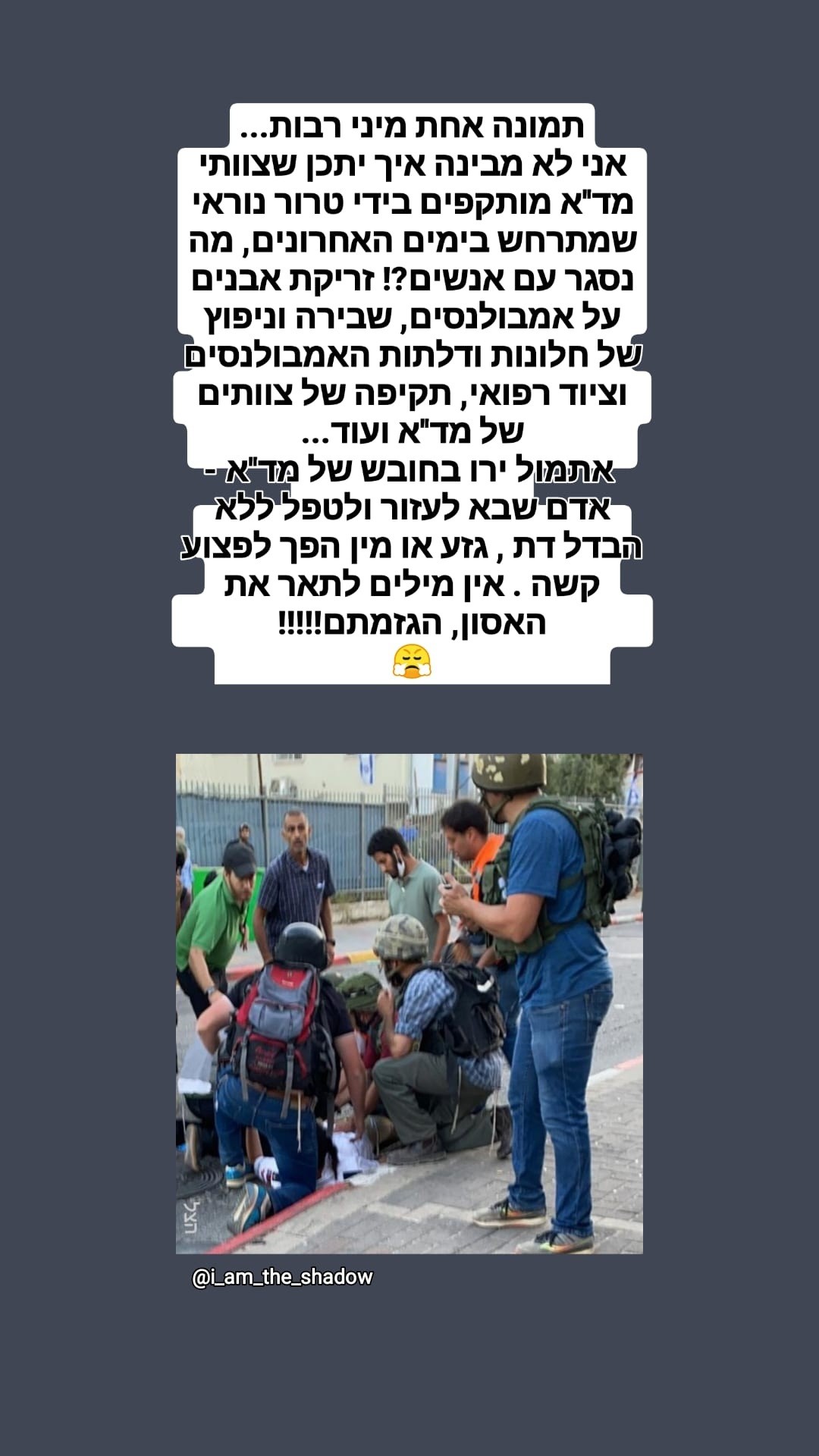 חיכתה 6 שעות!!! נצח!!! במרפאה עם פצועים והרוגים והתחננה וביקשה שיחלצו אותה ואותם.