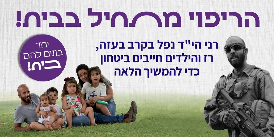 רני בן זוגי ואב ילדי נפל בקרב בעזה ב- 18.11.23 ב- 7 באוקטובר הוא פשוט קם ונסע דרומה, מהבית שגרנו בו בצפון להילחם על המדינה שלנו ולא חזר.