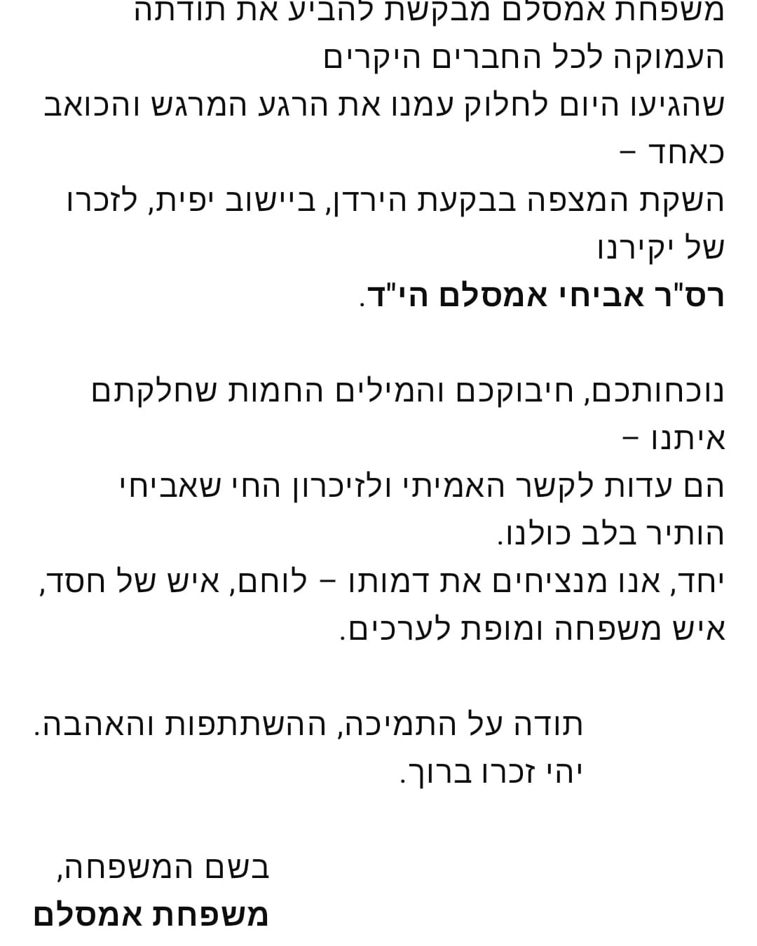נושאים את זכרכם הטוב בכל אשר נלך ואומרים לכם תודה על ההקרבה