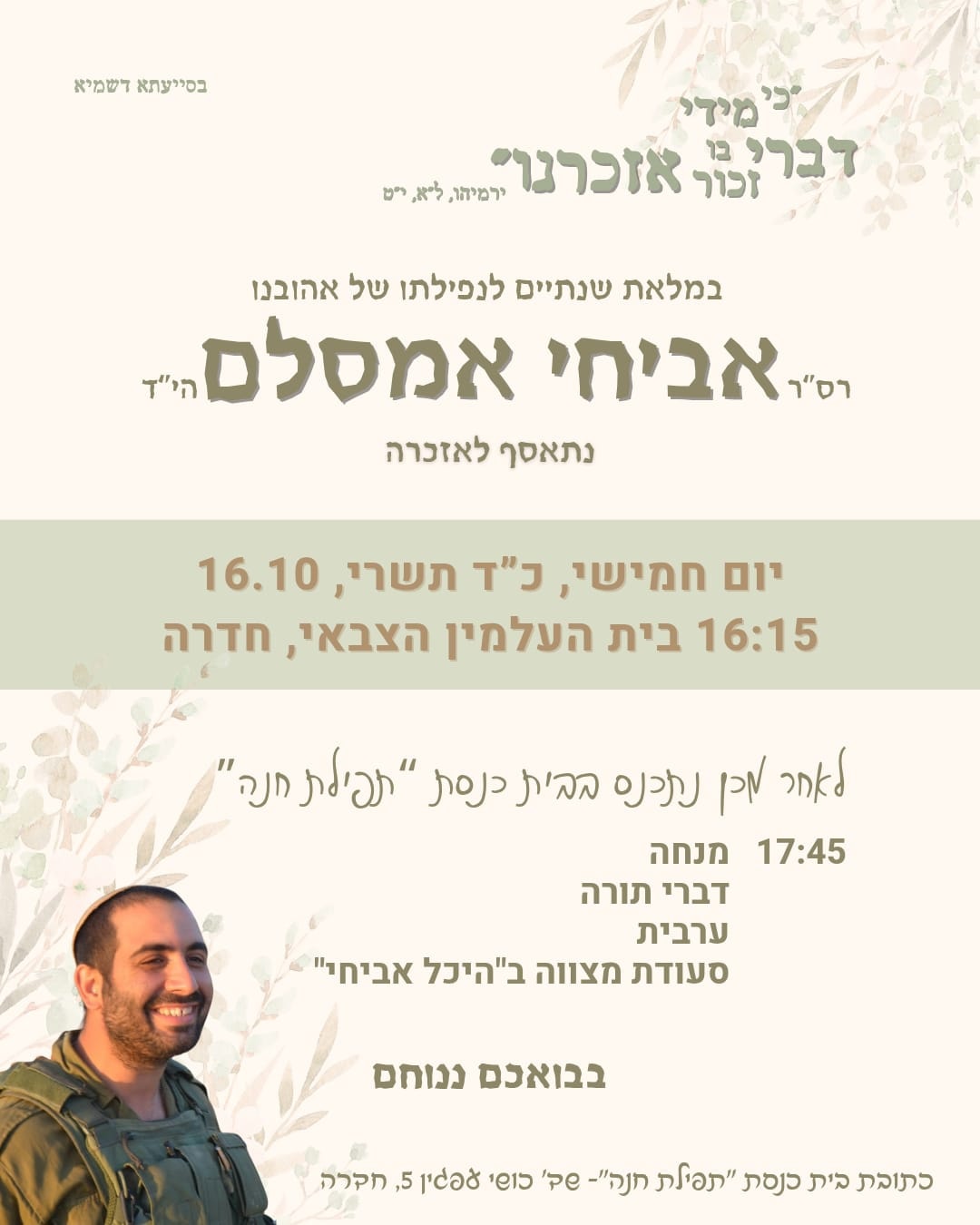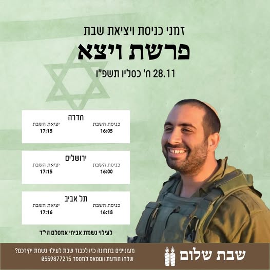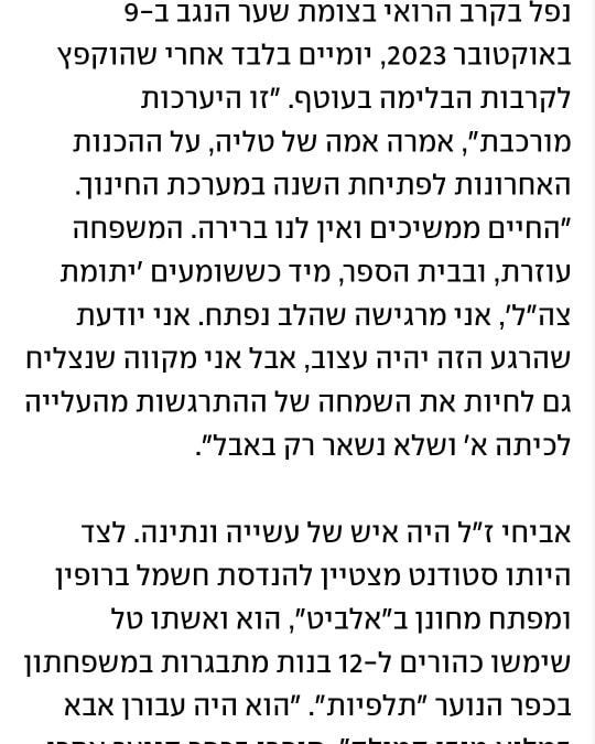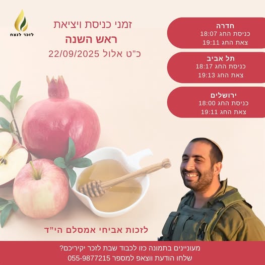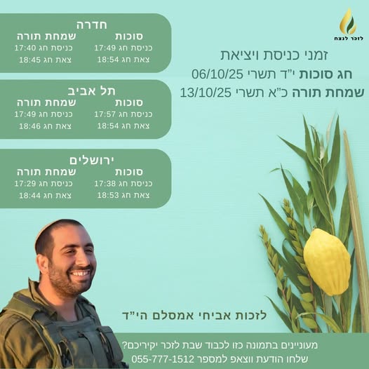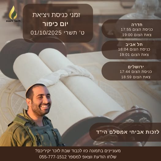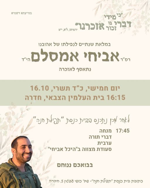 שנה בדיוק אחרי אביחי שלנו, בכ"ד תשרי תשפ"ה, נהרג בלבנון מדריך נוסף בכפר הנוער "תלפיות" בחדרה, אליאב אביטבול.