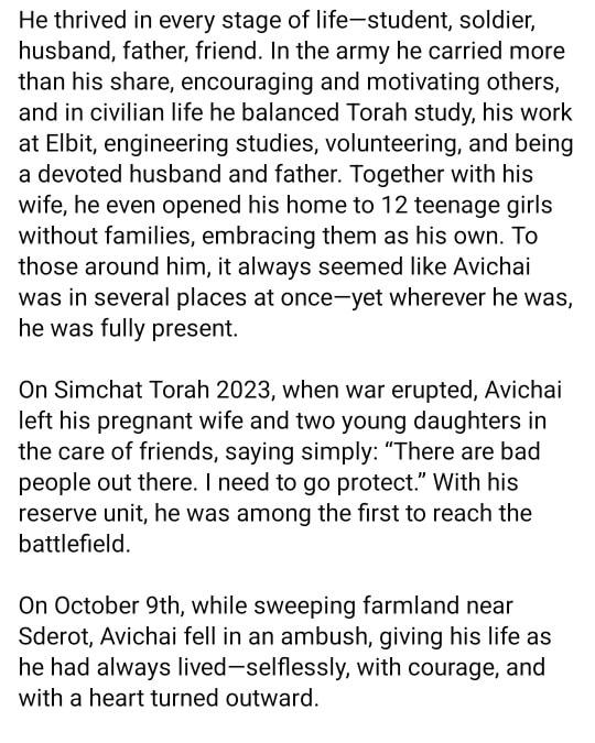 היה לי כואב ומצמרר לשמוע על האובדן , הבנתי שהותיר אחריו אישה ושני ילדים אני מחזק אתכם ומשתתף בצערכם שלא תדעו עוד צער לעולם. השם יקום דמו!! יהי זיכרו ברוך 🥀💔💔