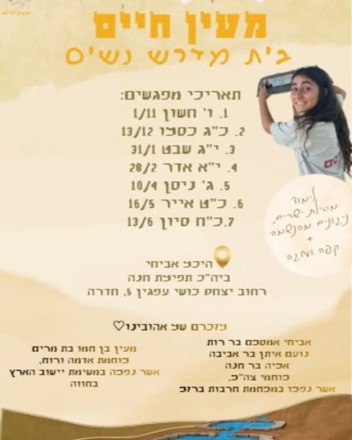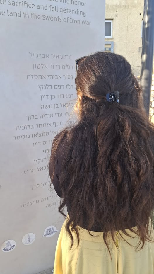 ביום החג הוקפצת ולא היססת, למרות שאירחת חברים לבשת מדים ונסעת להגן על המולדת. אהבת הארץ היתה טמועה בך כל כך שנתנה לך אומץ לגור בקרית ארבע וללמוד בישיבה בשבי חברון ונתנה לך גם את האומץ לקחת נשק ולהסתער.