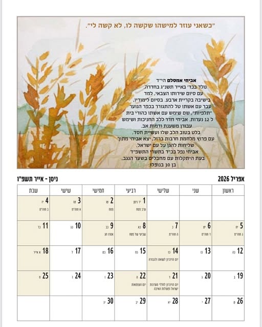 תודה לטליה על הקדשה הלוח