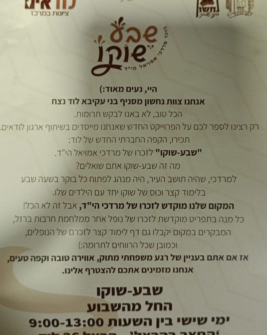 נוער לוד מסניף בני עקיבא "נצח" בעיר יצאו ביוזמה מהממת: עגלת קפה הפתוחה בימי שישי לזכר הנופל בן העיר רס"ב מרדכי אמויאל הי"ד.
