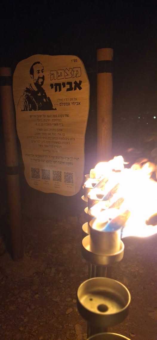 באוהל ההרשמה קיבלנו שלט (זמני) עם שמו של אביחי, תאריכי לידה ונפילה וברקוד לשיר שבחרנו: עד האהבה של אביתר בנאי, כי אביחי היה כל כך טוב בלאהוב אחרים.