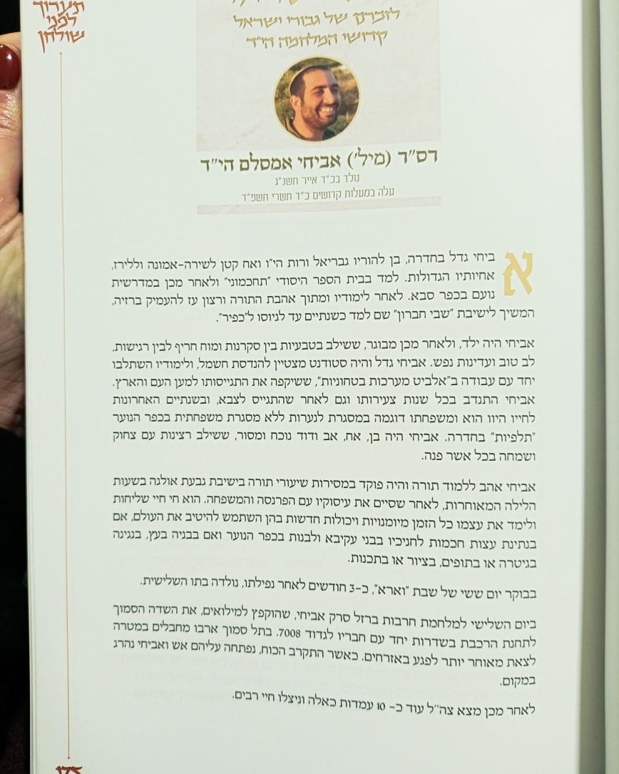 חרבות ברזל, לב זהב- דף לזכרו של רס"ל אביחי אמסלם הי"ד