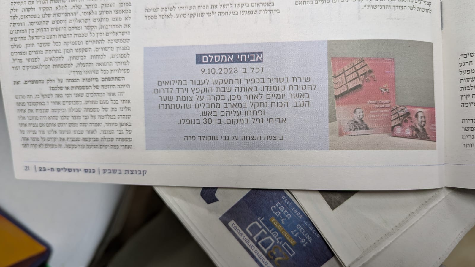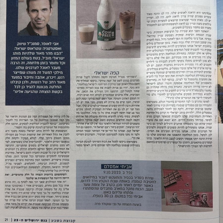 בשבת שעברה חולק מוסף "כנס ירושלים 23" לעיתון "בשבע" ובו כתבה על המיזם המרגש של Strauss-Group קבוצת שטראוס בו הם מייצרים חטיפים וממתקים לזכר הנופלים ולמען המשפחות.