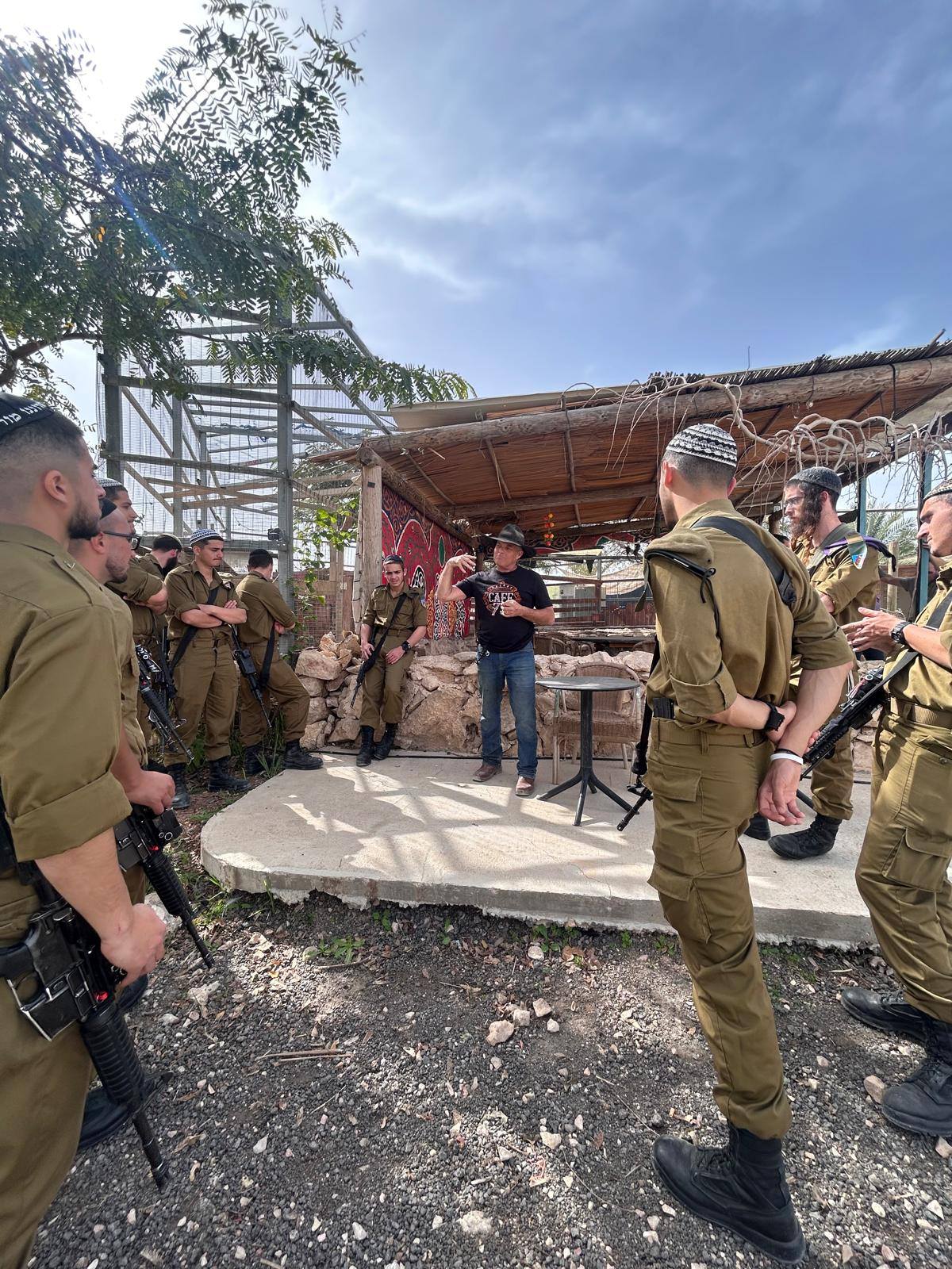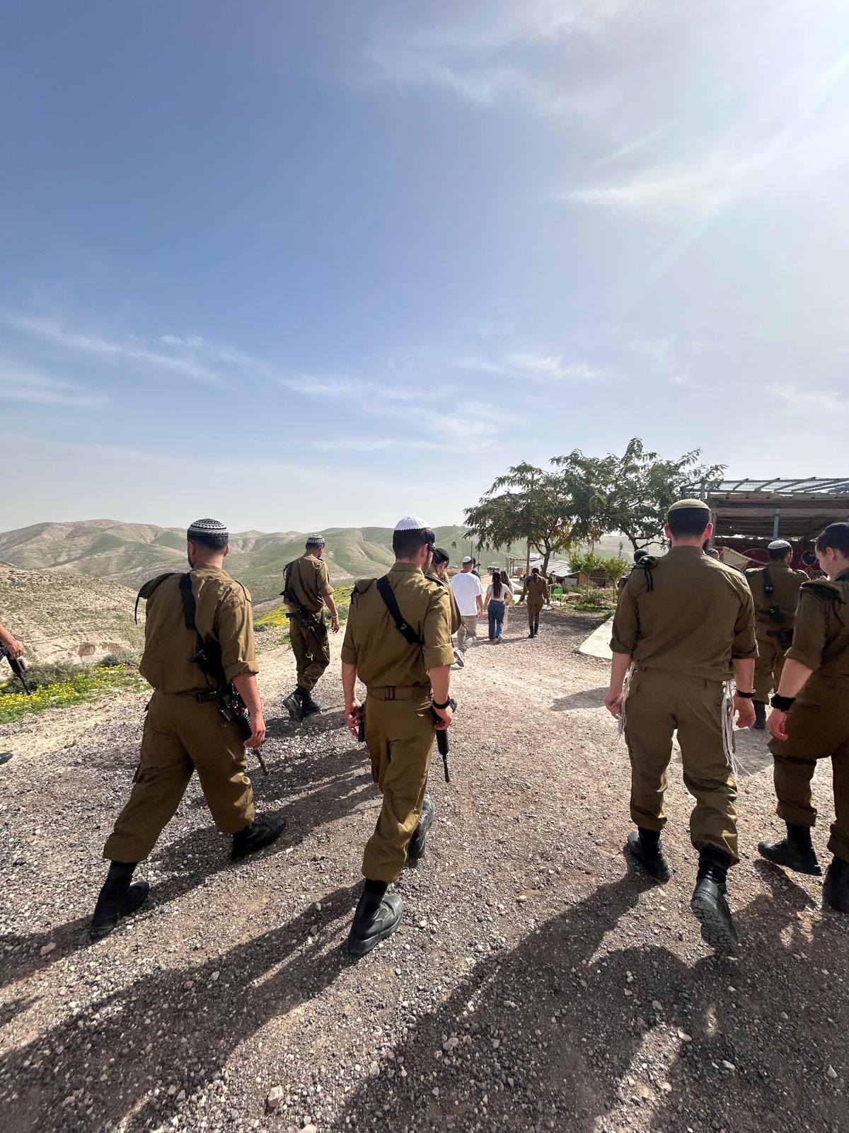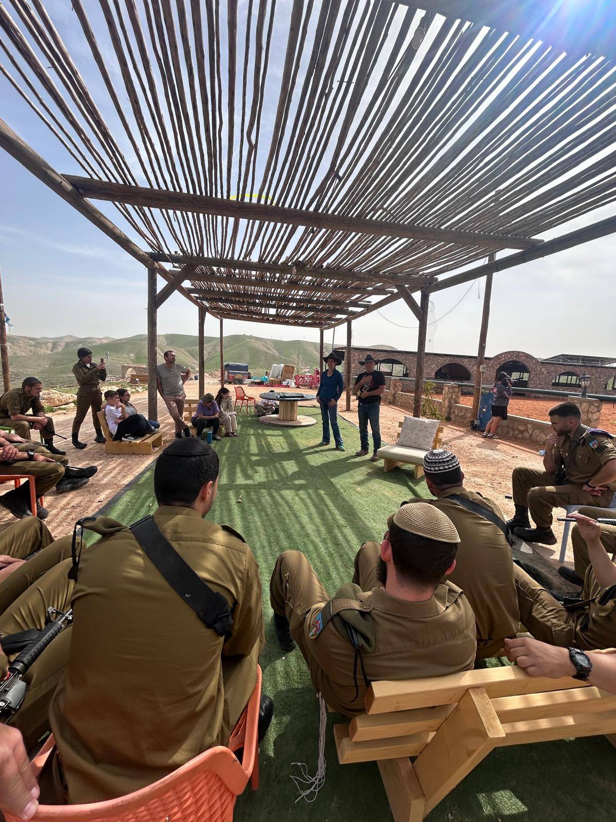החיילים הגיעו בבוקר לקפה ועוגה ושיחת היכרות איתנו ודרכנו גם עם עומר, אח"כ יצאנו לסיור רכוב בשלוש נקודות ציון משמעותיות: