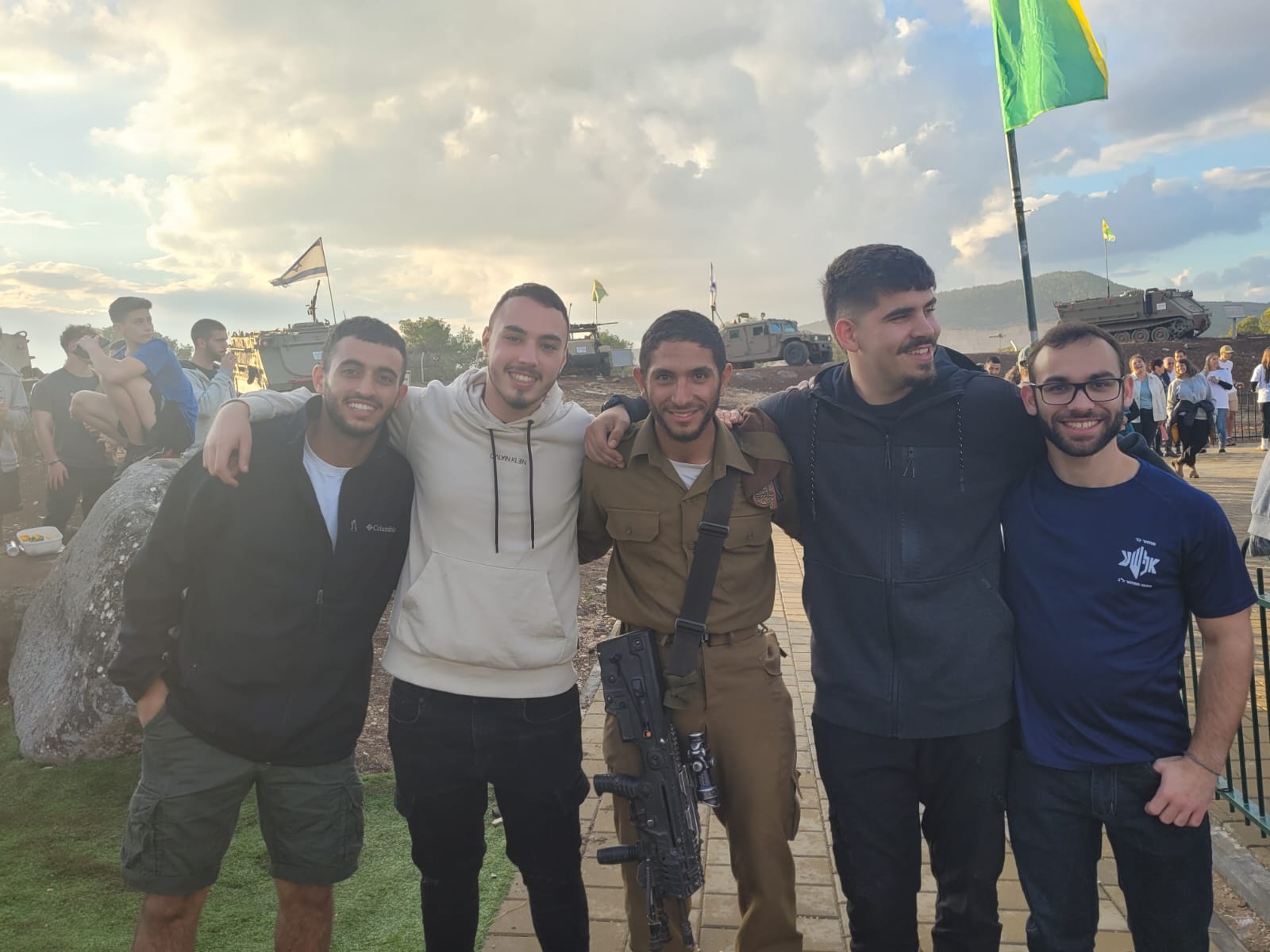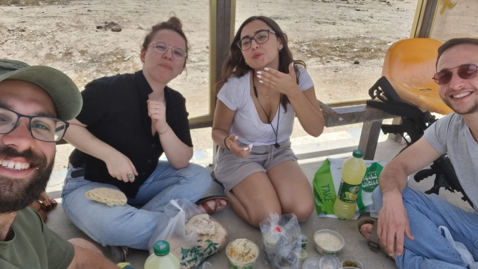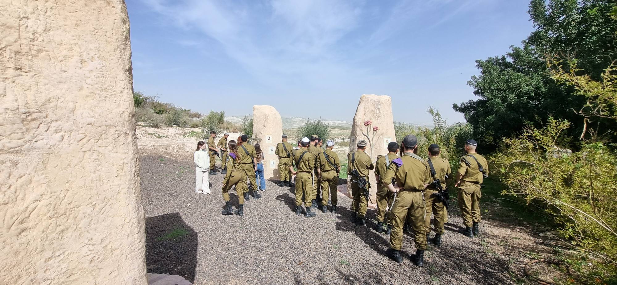 החיילים הגיעו בבוקר לקפה ועוגה ושיחת היכרות איתנו ודרכנו גם עם עומר, אח"כ יצאנו לסיור רכוב בשלוש נקודות ציון משמעותיות: