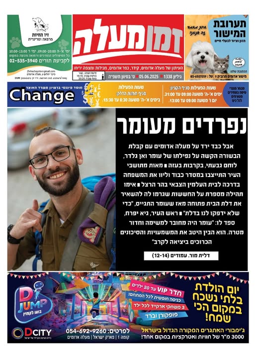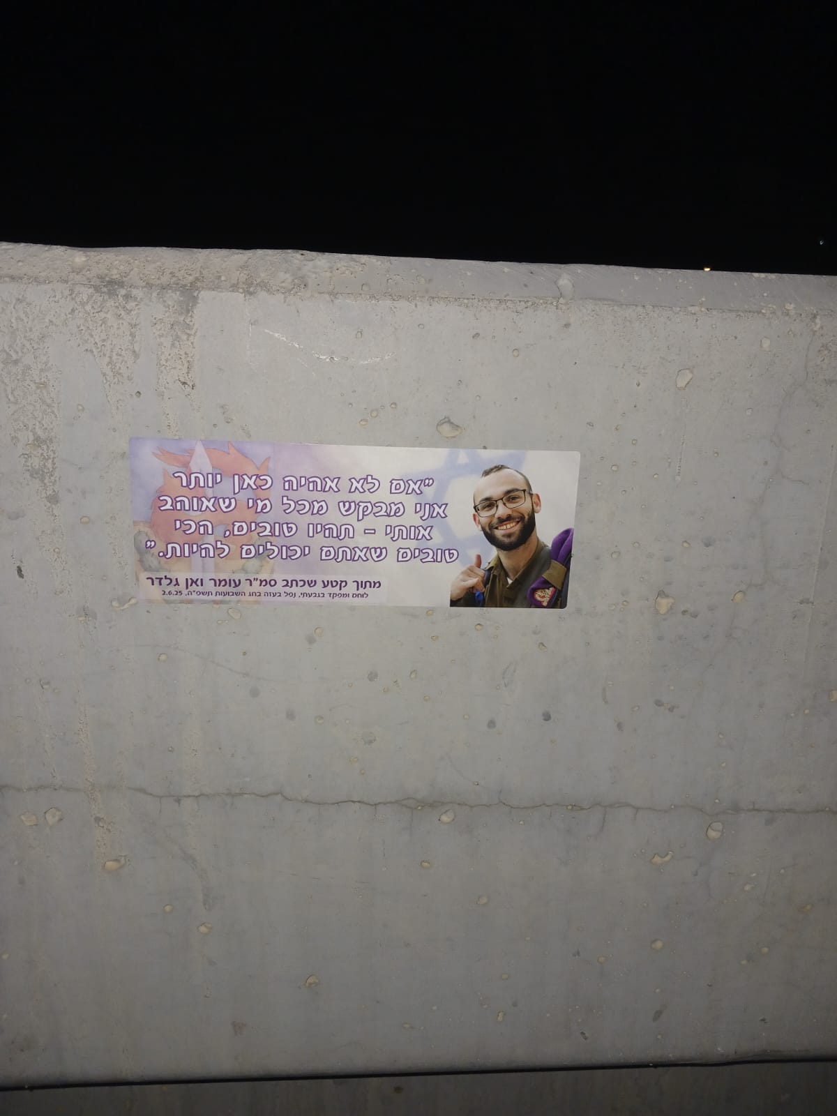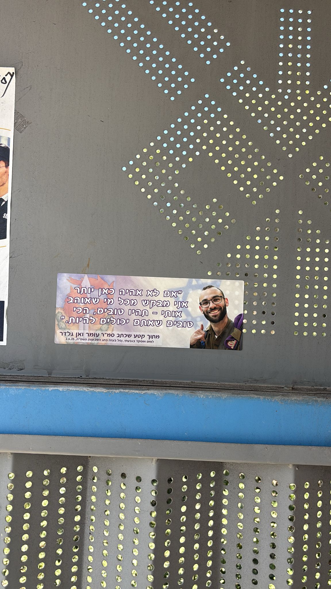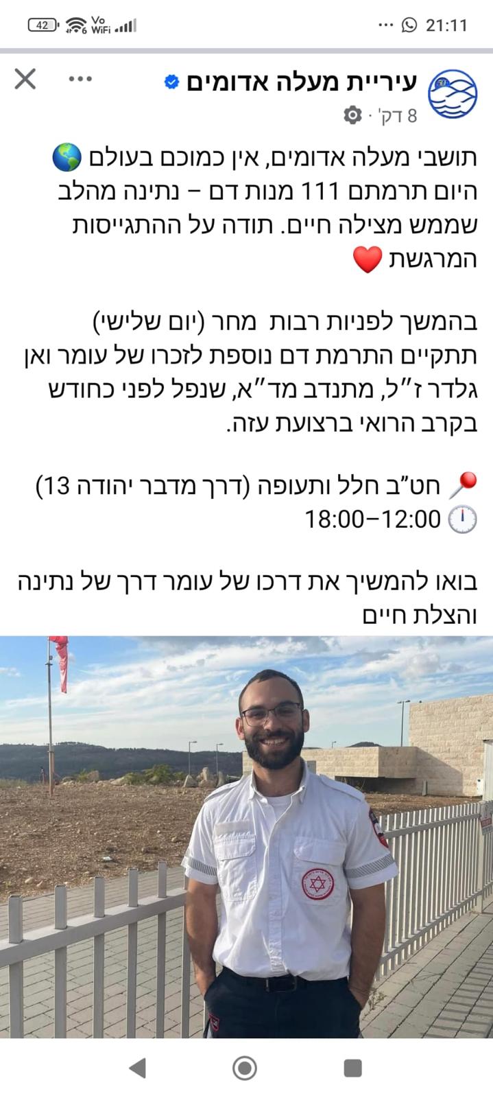 אתמול פגשתי במקרה בחור צעיר שהתנדב במד״א מעלה אדומים וירושלים, השיחה התגלגלה כמובן לעומר. ישר השתתף בצערנו וסיפר איך זוכר את המשמרות עם עומר, צוחק, מחייך, אהוב על כולם.
